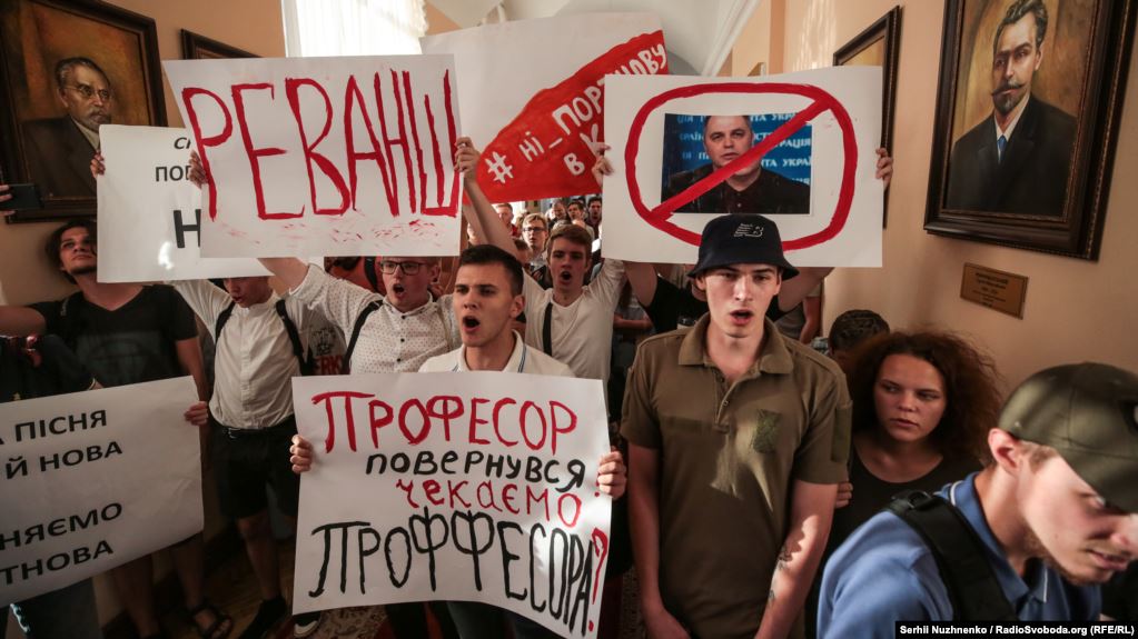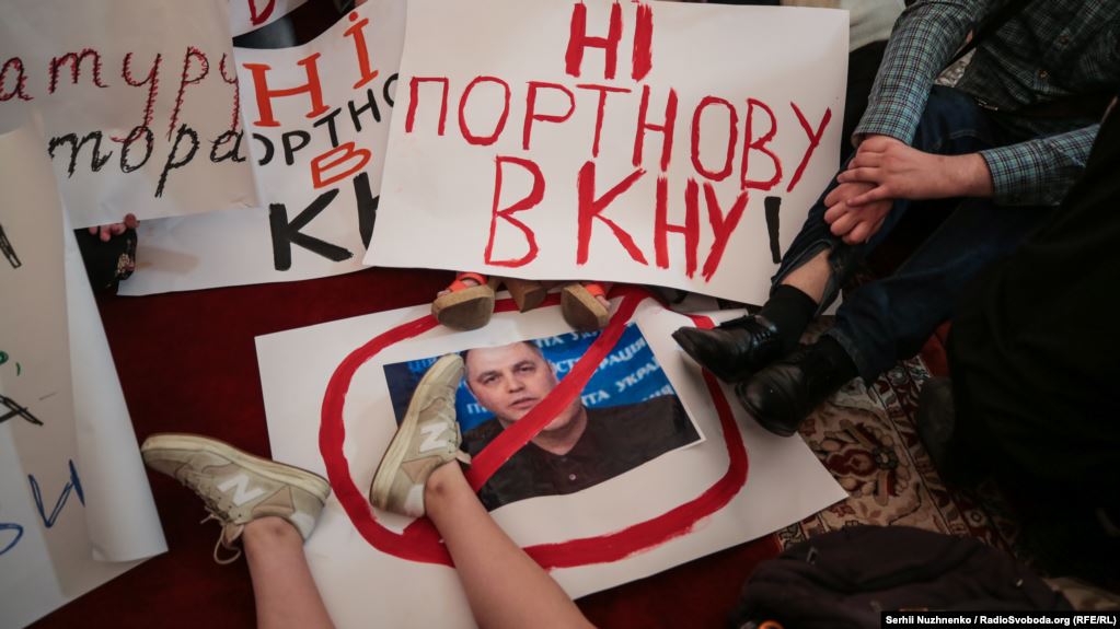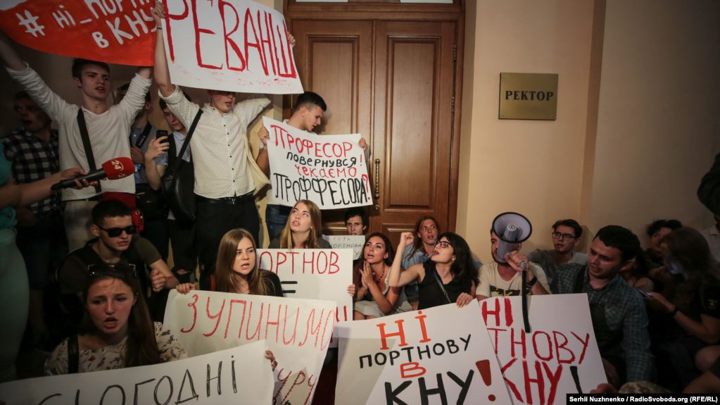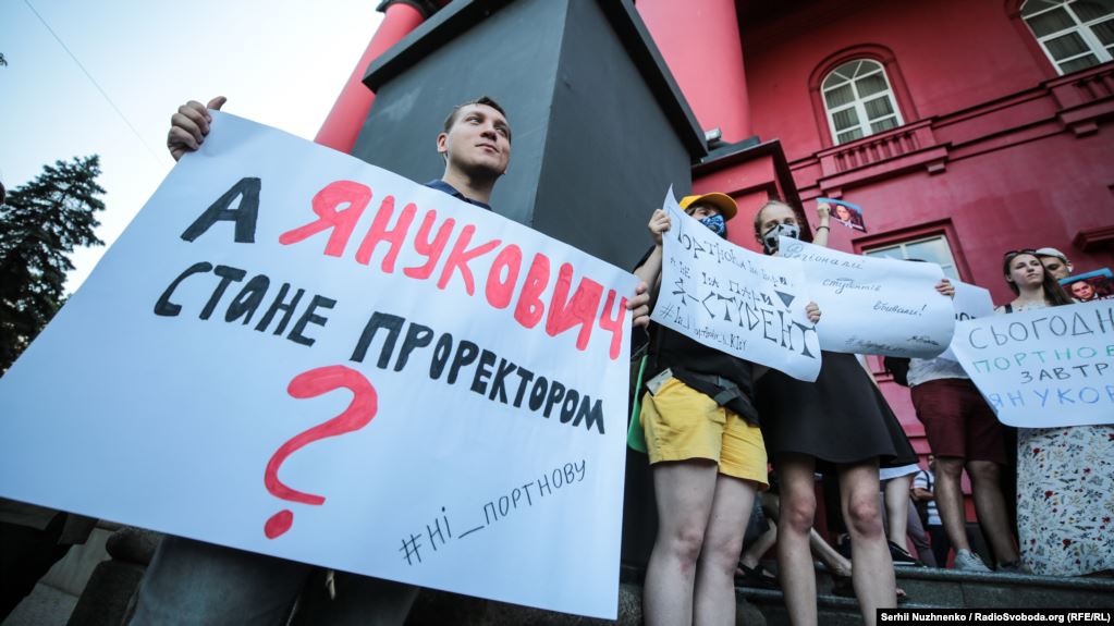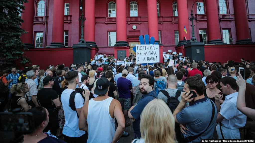 Вечером, 20 июня, несколько сотен студентов Киевского национального университета имени Тараса Шевченко вышли на протест против приказа о назначении бывшего заместителя главы АП Виктора Януковича Андрея Портнова преподавателем на кафедре конституционного права юридического факультета.