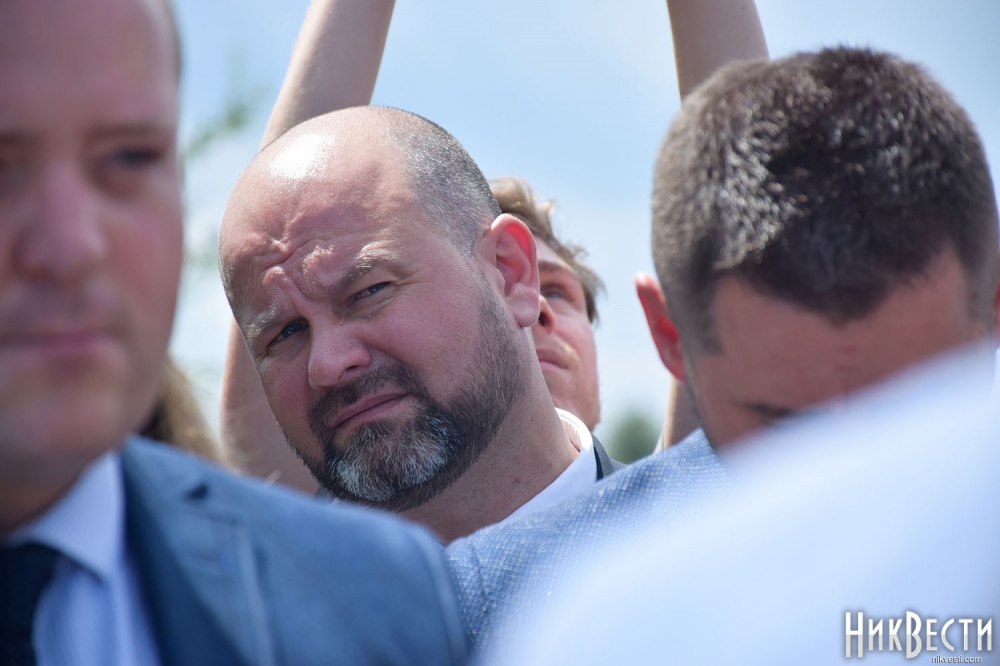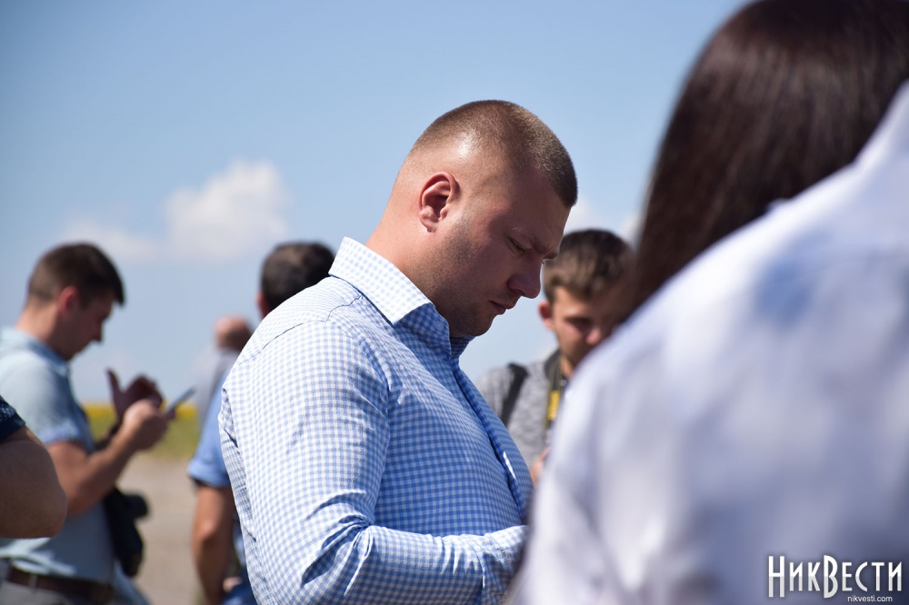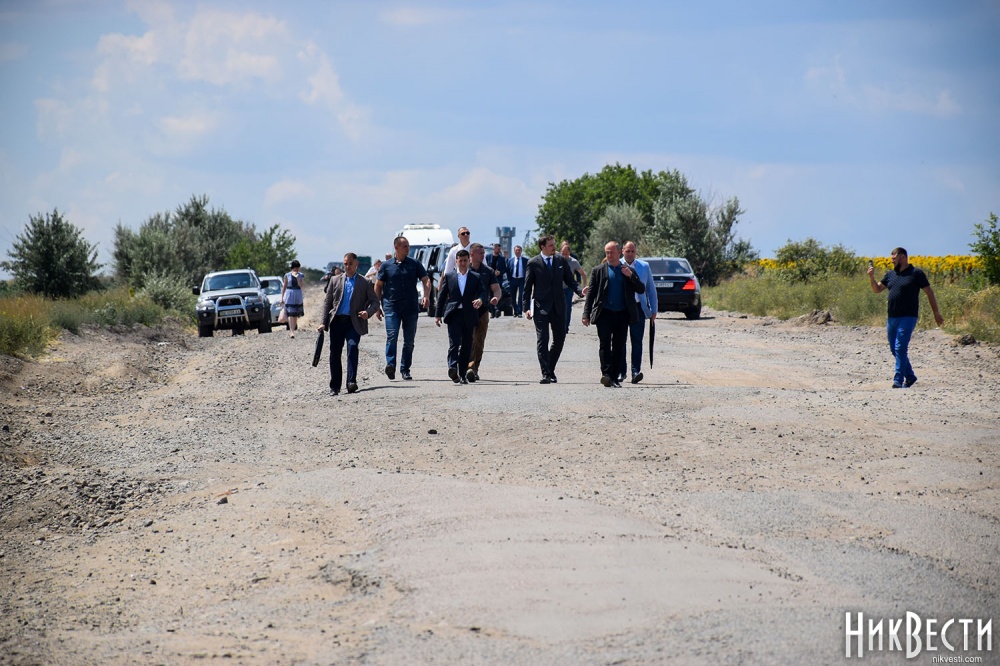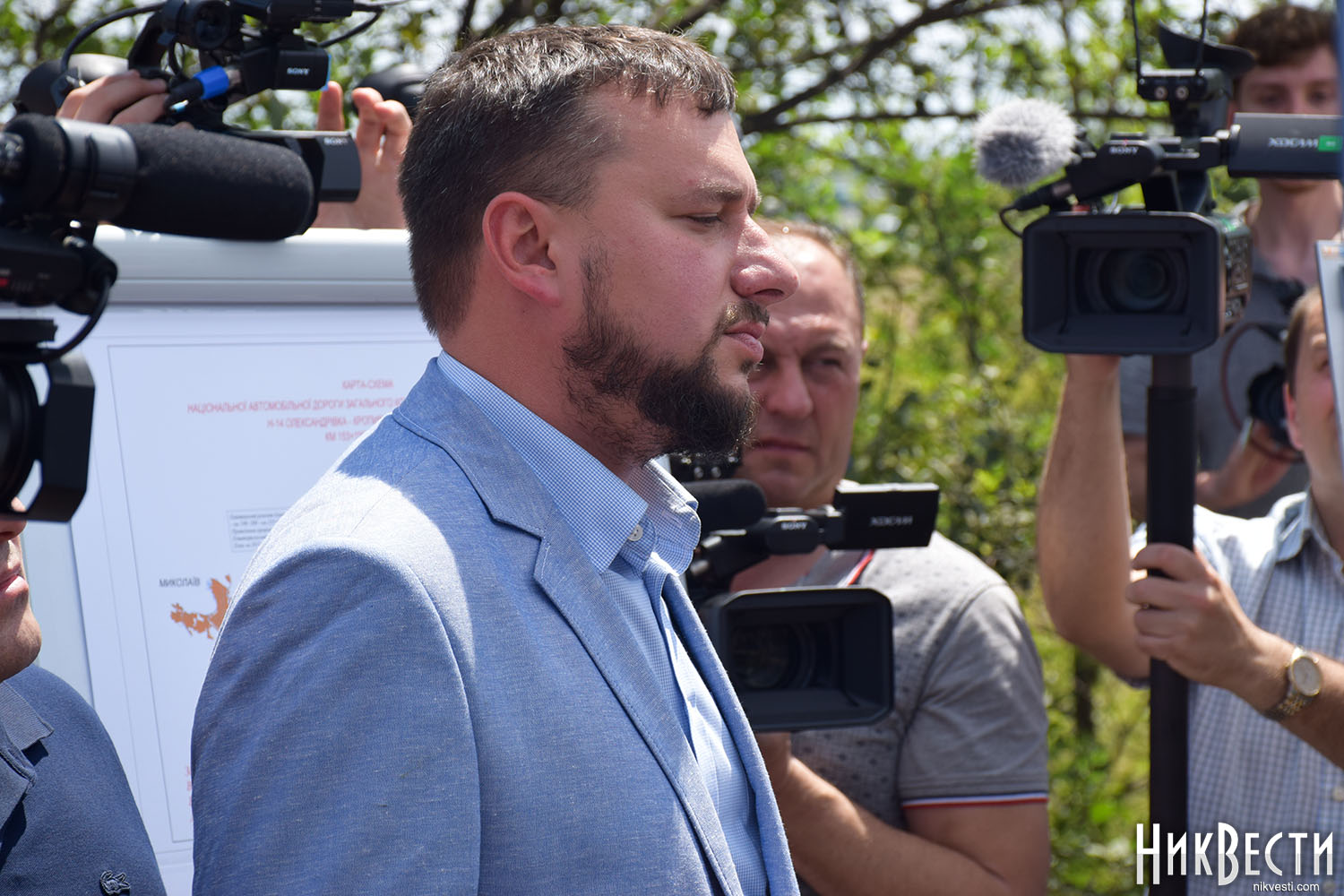 На трассе «Н-14» и.о. руководителя Службы автомобильных дорог в Николаевской области Андрей Максименко представил президенту планы по реконструкции дорог и рассказал о проблемах, с которыми столкнулись дорожники. На совещании присутствовали представители «Укртрансбезопасности», Министерства инфраструктуры, вице-губернаторы Николаевщины Валентин Гайдаржи, Вячеслав Бонь и Александр Трайтли, а также руководство СБУ и Национальной полиции.