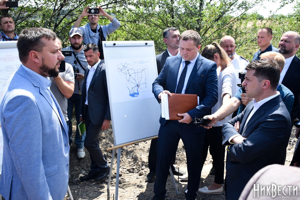 Президент Украины Владимир Зеленский во время своего визита в Николаевскую область побывал на трассе Н-14 «Николаев - Кропивницкий», где ознакомился с планами по реконструкции государственных трасс.