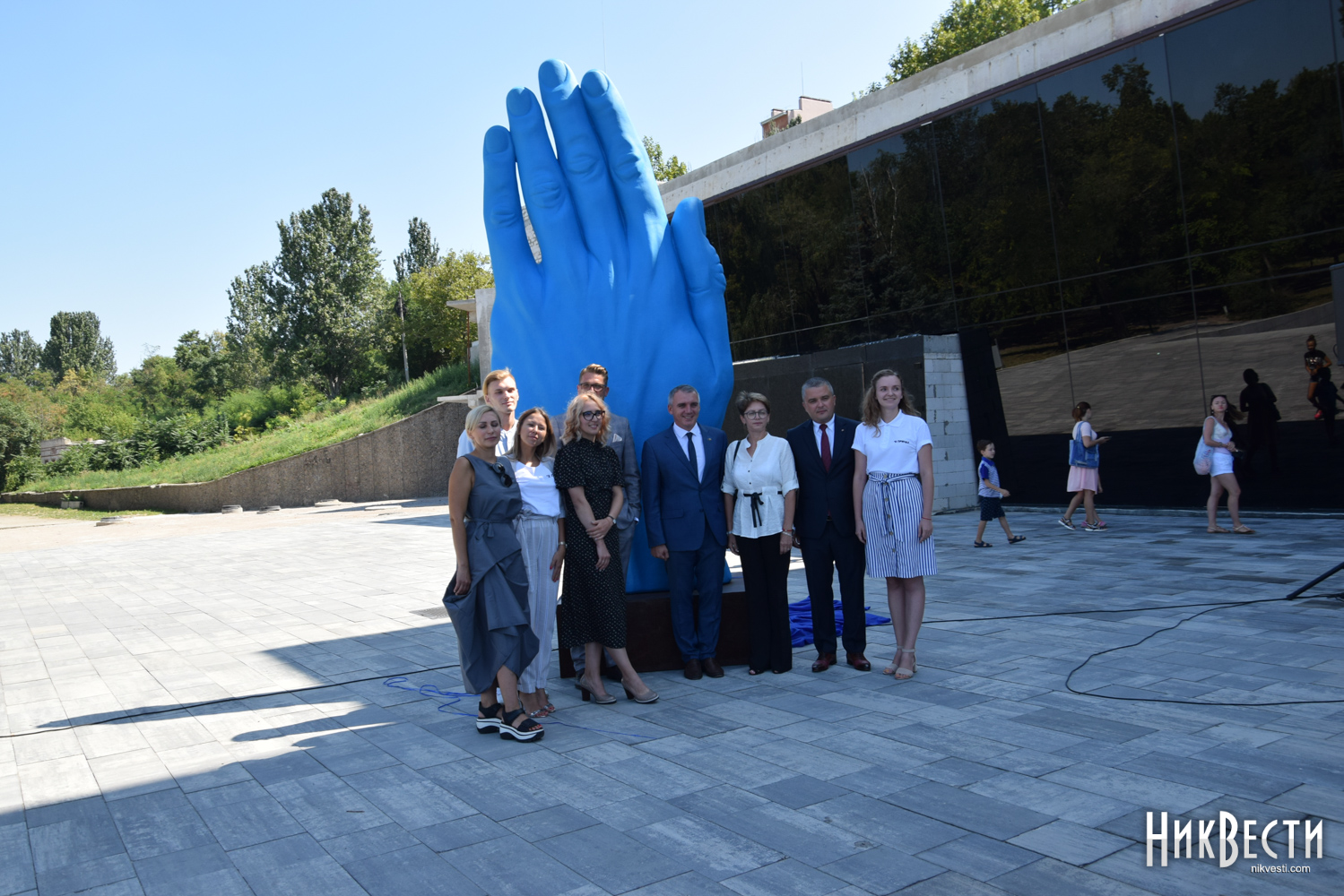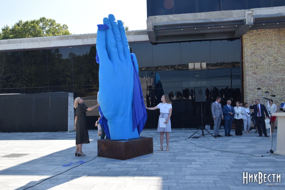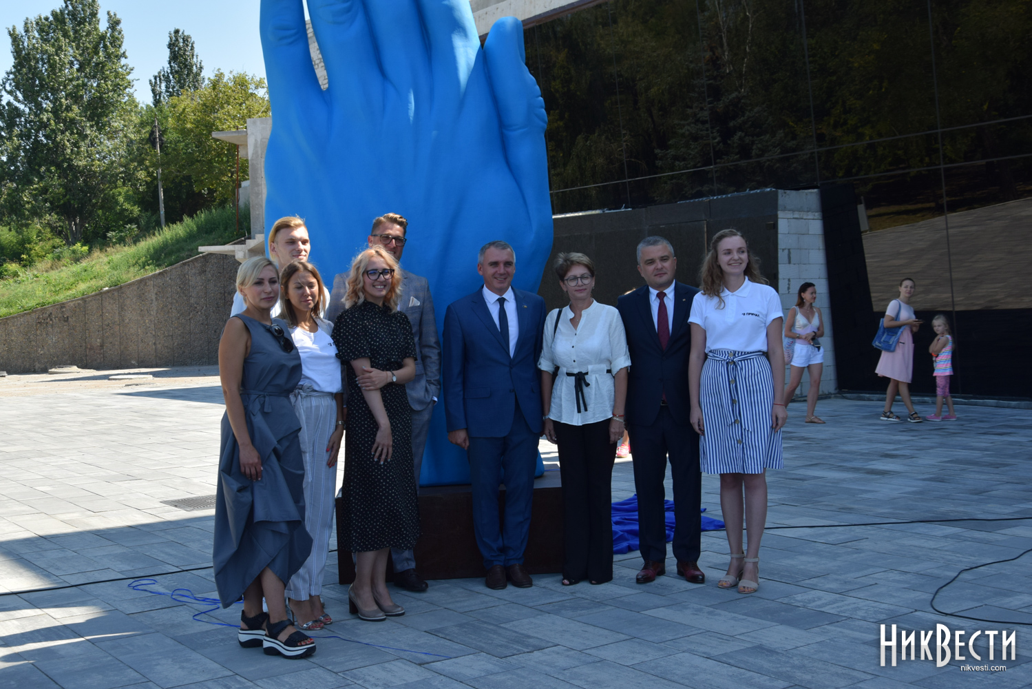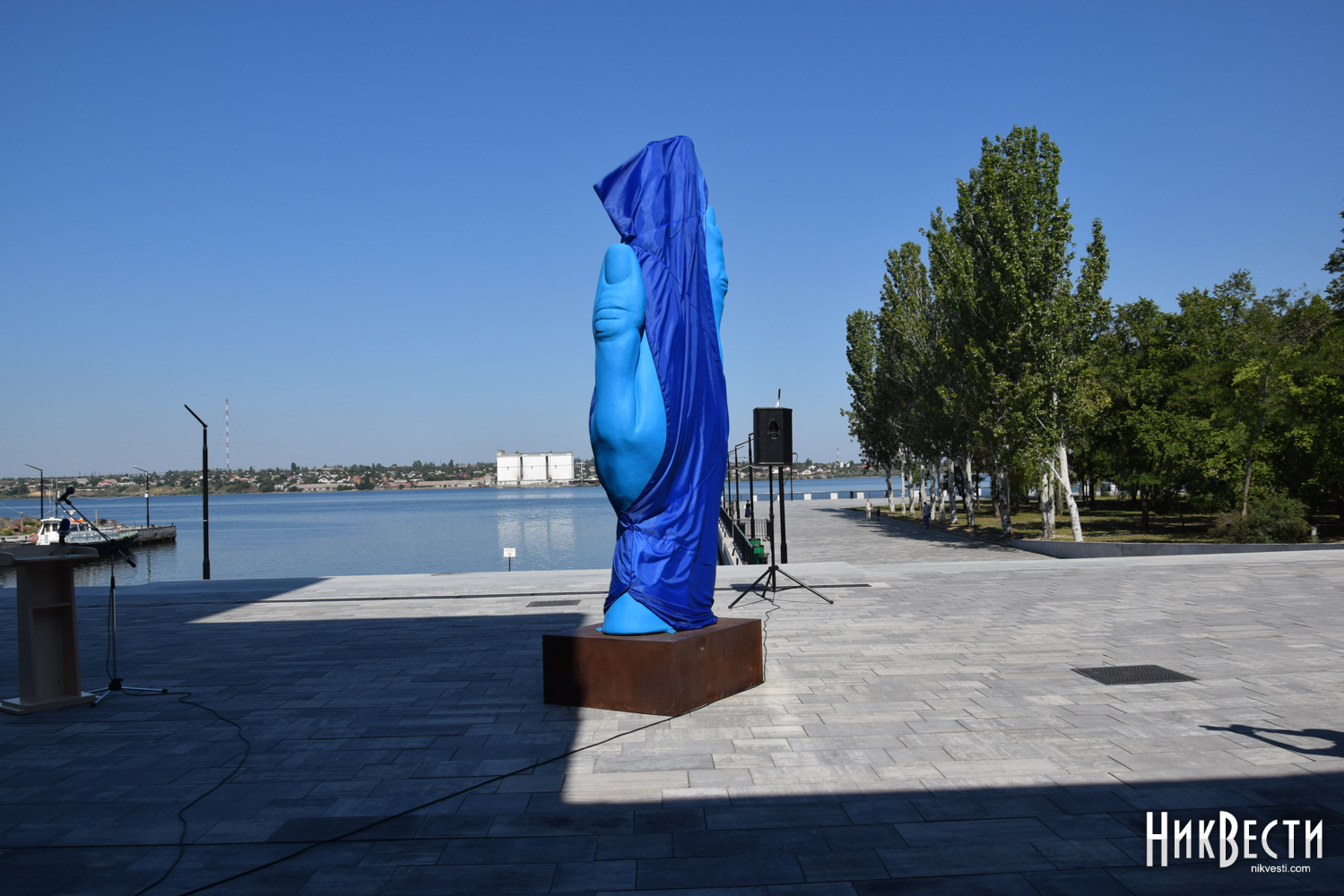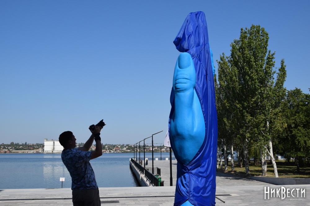 Сегодня, 20 августа, на набережной арт-пространства *8 ПРИЧАЛ в Николаеве установил новый арт-объект «Middle Way» в виде гигантской синей руки.