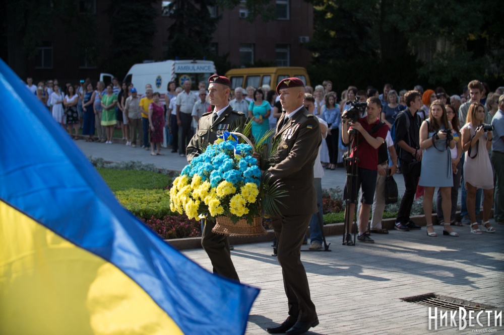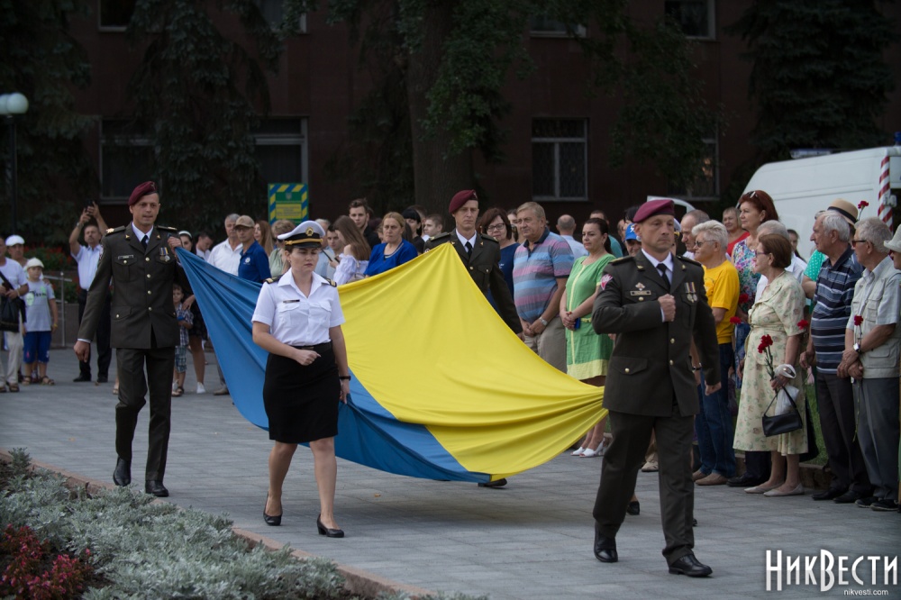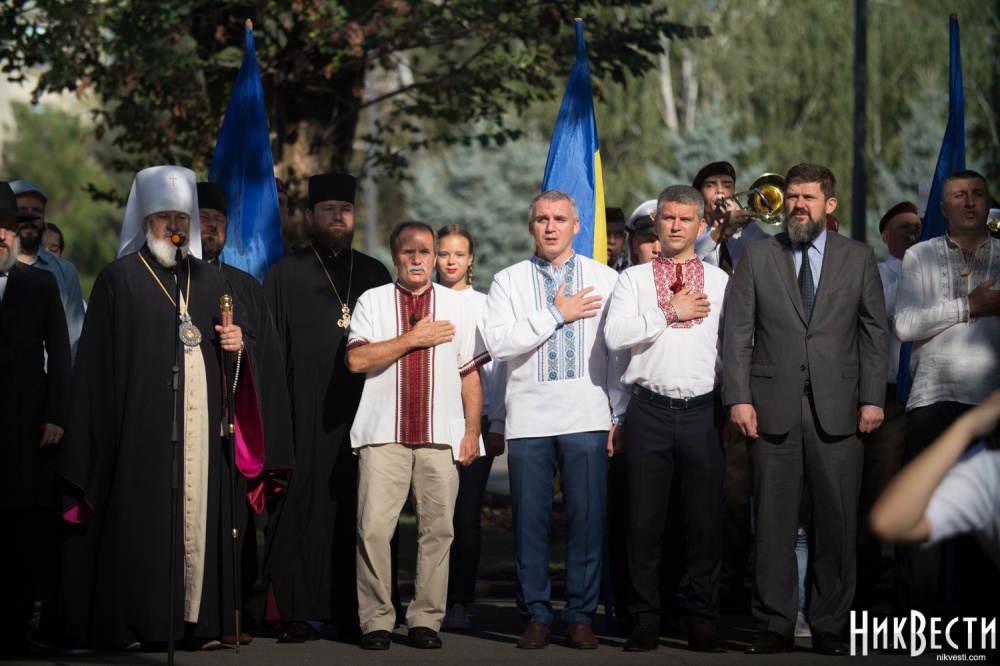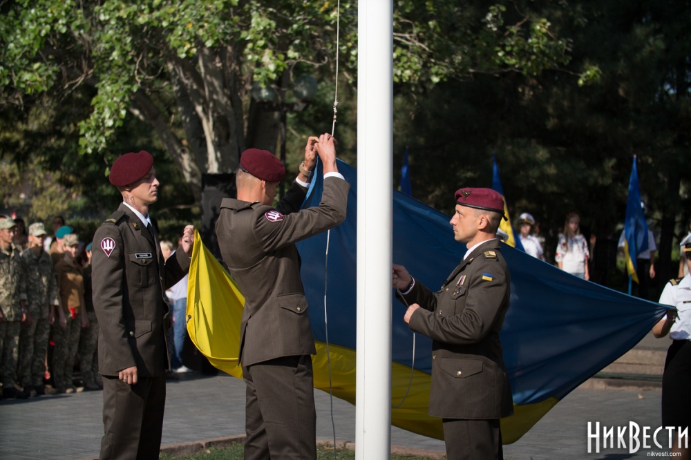В мероприятии, которое традиционно прошло на площади перед зданием Николаевского областного совета, приняли участие чиновники Николаевской ОГА, Николаевского городского совета, силовики, представители общественности, военнослужащие и студенты.