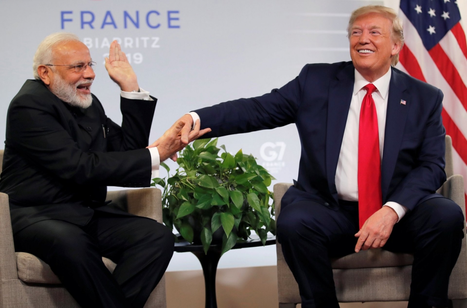 8. Президент США Дональд Трамп и один из гостей саммита, премьер-министр Индии Нарендра Моди на совместной пресс-конференции
