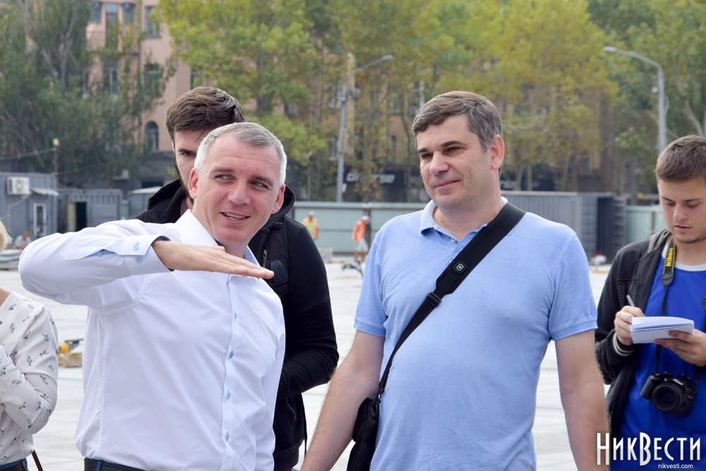 Сегодня, 6 сентября, мэр Николаева Александр Сенкевич проинспектировал ход строительных работ на Соборной площади, на которой через неделю состоится празднование Дня города.