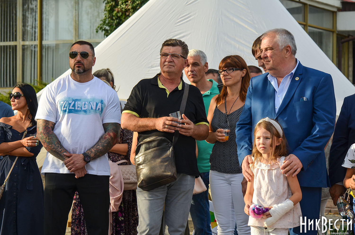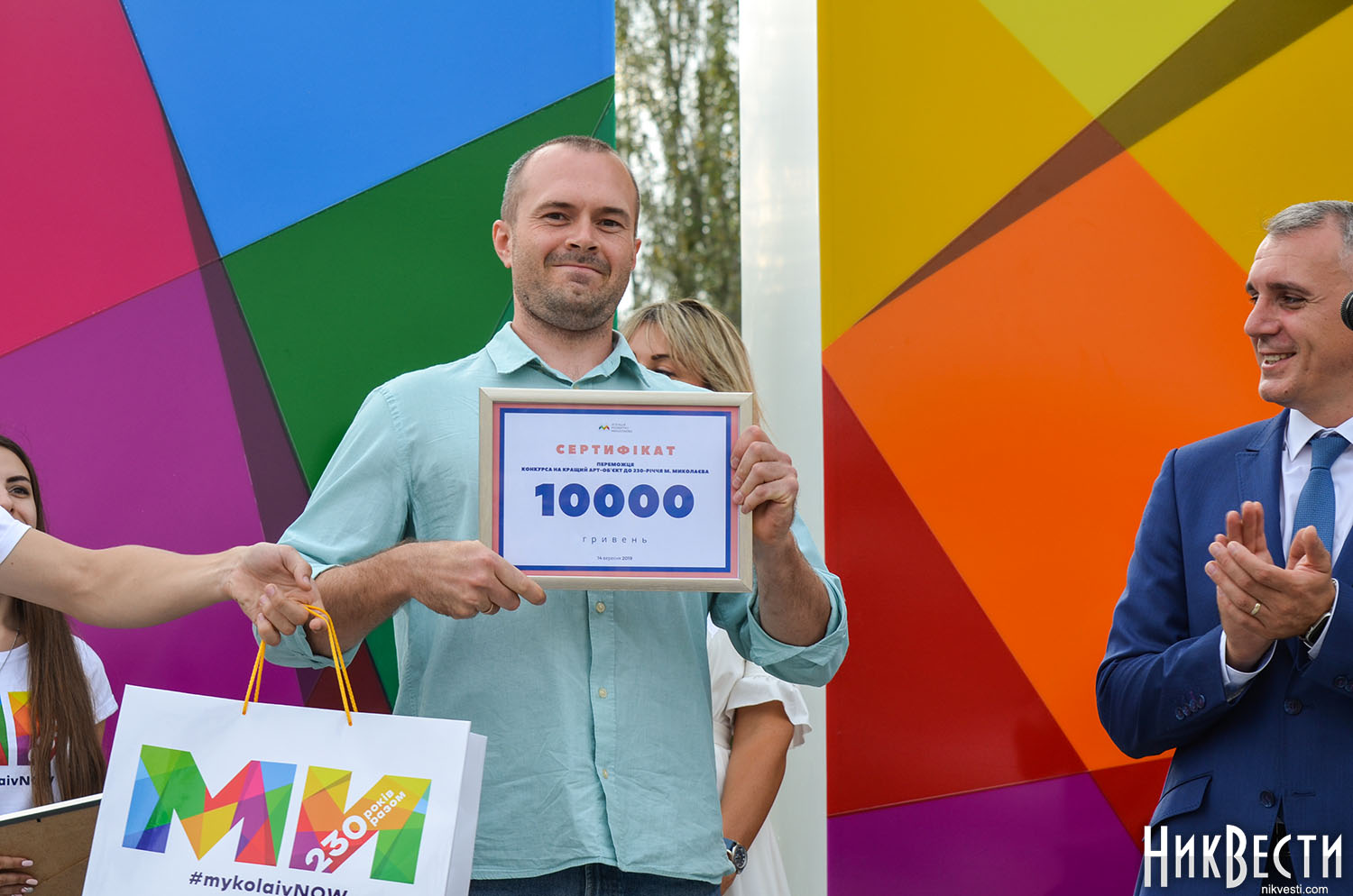 — Сегодня ничего существенного не произошло, просто опасная зона, которая была в грязи и пыли, превратилась в уютный уголок с арт-объектом. Он напоминает всем нам, что Николаев все 230 лет был не о дорогах, которые нам всем необходимо ремонтировать, а о людях - николаевцах. Я очень рад по поводу того, что благодаря меценатам, на благоустройство этой зоны использовано минимальное количество бюджетных средств. Да, этот проект не изменил жизнь николаевцев и не улучшил их благосостояние. Однако такие «пятна» радости и красоты будут потихоньку, по капле сливаться в большое море счастья, которое ожидает Николаев. Потому что Николаев обречен на успех. Поздравляю вас с Днем города! Помните, что Николаев - это вы. И Николаев начинается с каждого из нас, - поздравил собравшихся мэр Николаева Александр Сенкевич.