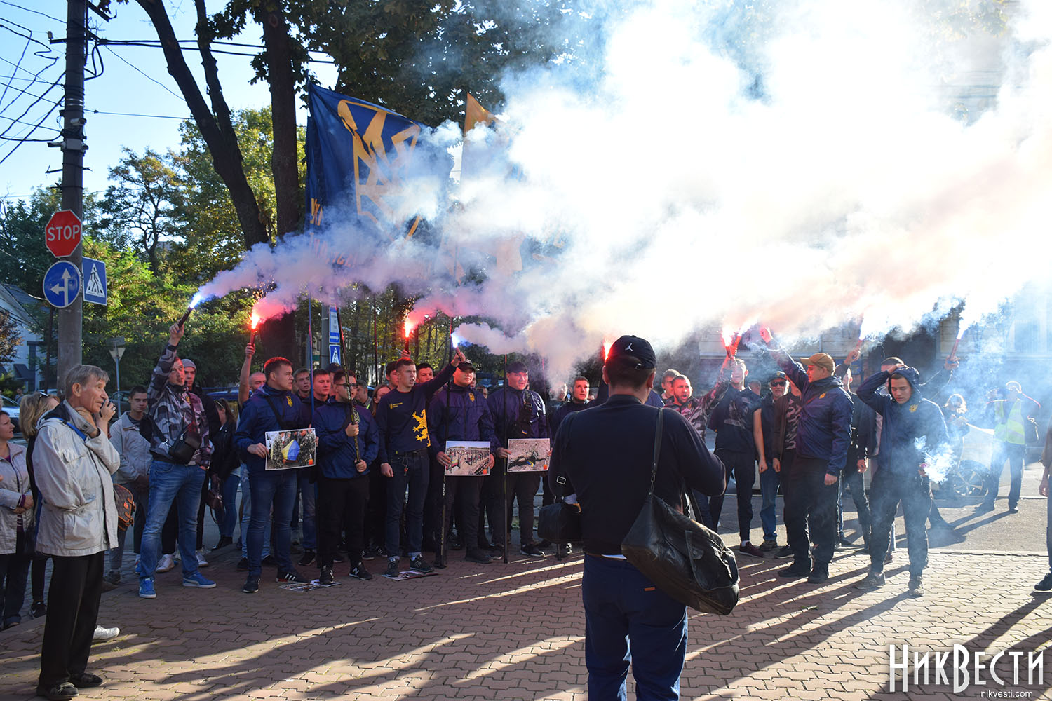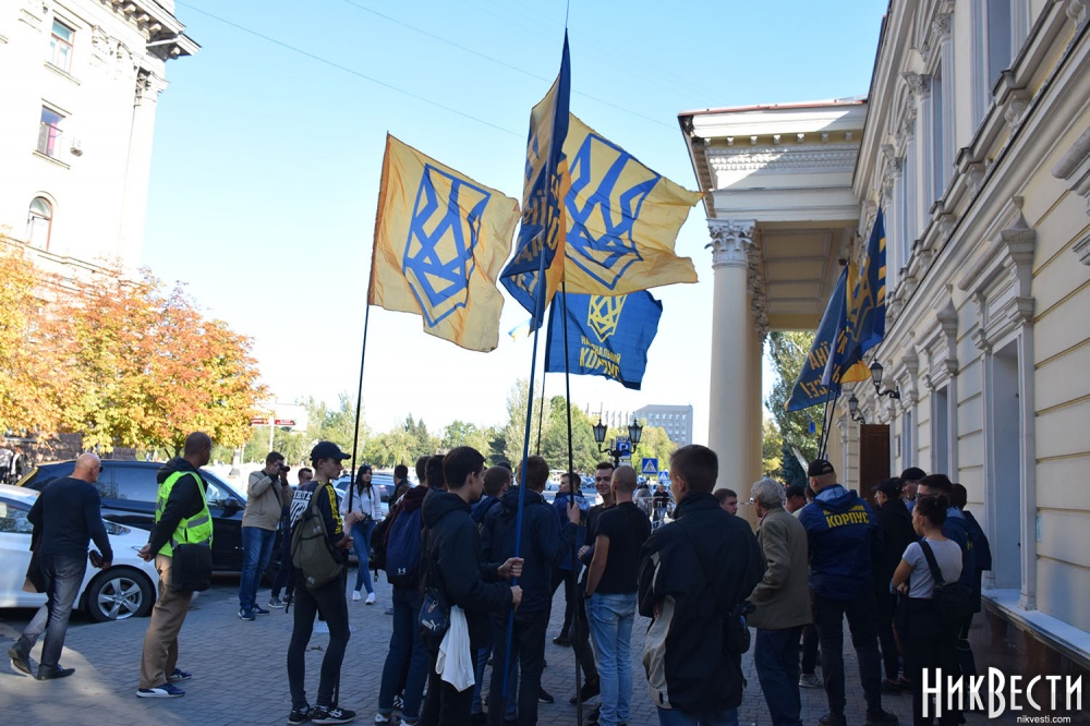 Сегодня, 2 октября, под зданием Управления СБУ в Николаевской области прошёл митинг против подписания вчера на заседании Трехсторонней контактной группой «формулы Штайнмайера».