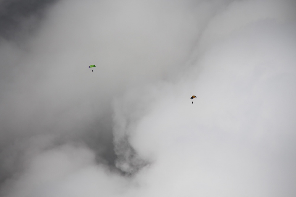 Прыжки осуществляли в максимально сложных условиях: из-за сильного ветра, кучевых облаков, с высоты 3500 метров на площадку приземления на уровне чуть выше 2 километра и с нижней кромкой облачности — 2300 метров. Фактически на этой высоте (2,3 км) парашютисты-спасатели, вынырнувшие из-за облаков, разглядывали, где они есть и куда несет их ветер, и самое главное — имели немного больше чем 200 м или считанные секунды на принятие оптимального решения: как и где им лучше приземлиться.