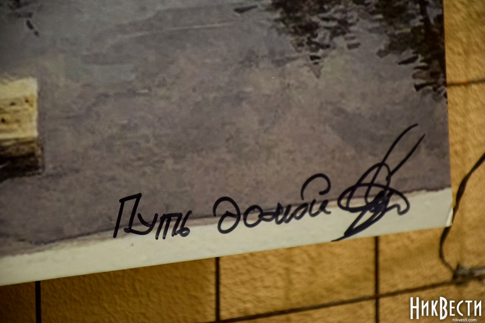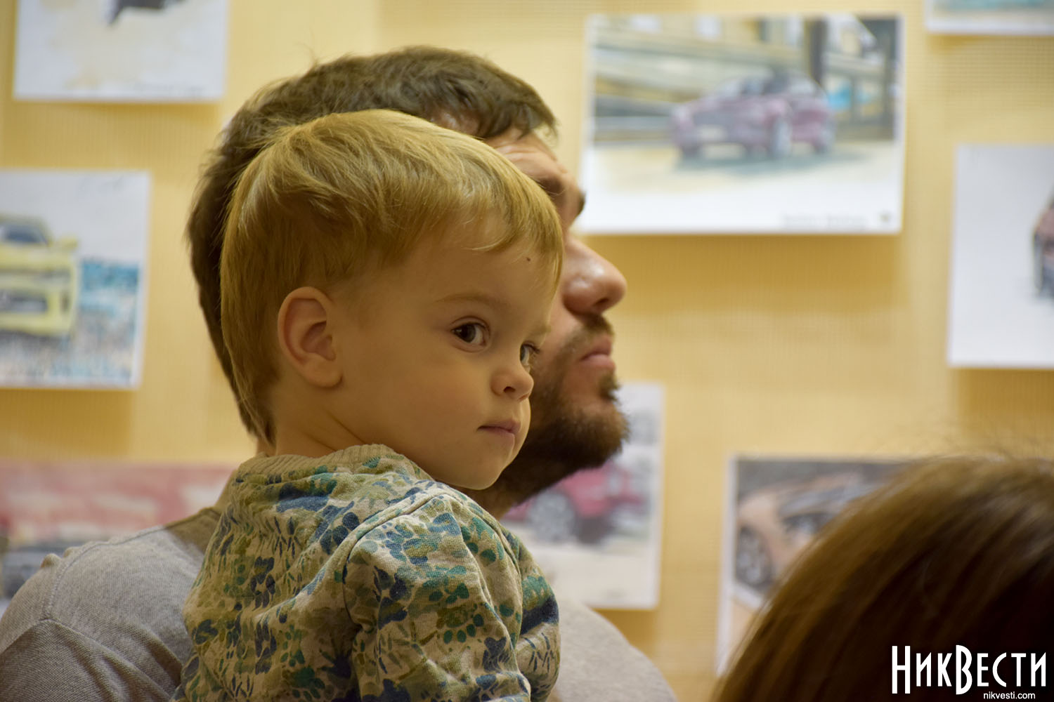 На выставке представлены все работы журналиста, сделанные за 1070 дней пребывания в российской тюрьме, в том числе и особая серия, которая ранее нигде не была показана – «Машины для сына». На открытии присутствовал сам автор - Роман Сущенко, который рассказал, почему для презентации своих работ он выбрал именно Николаев.