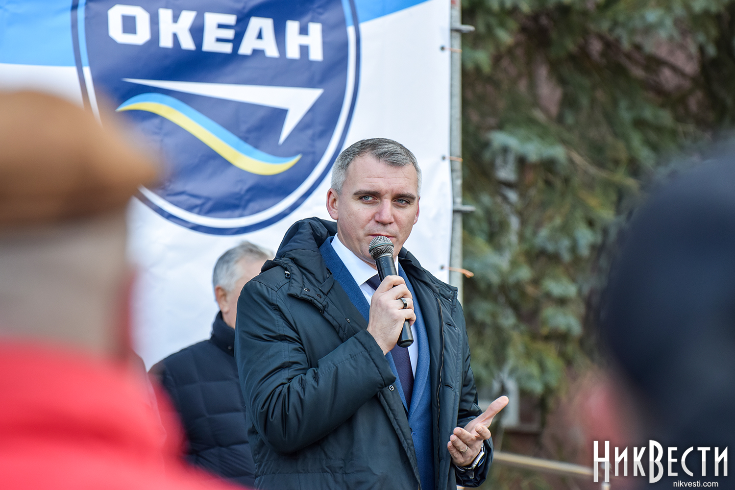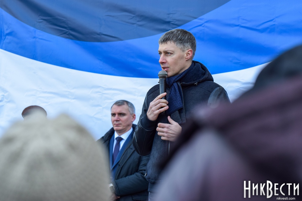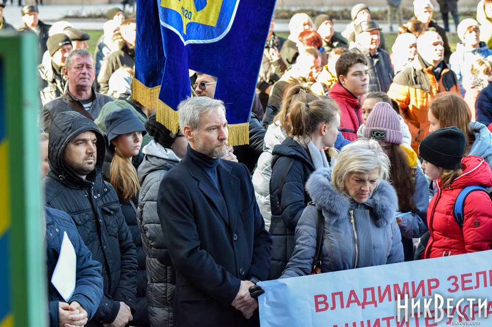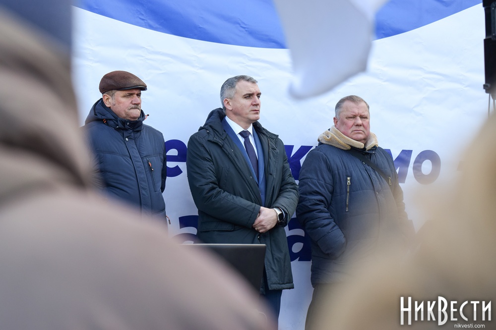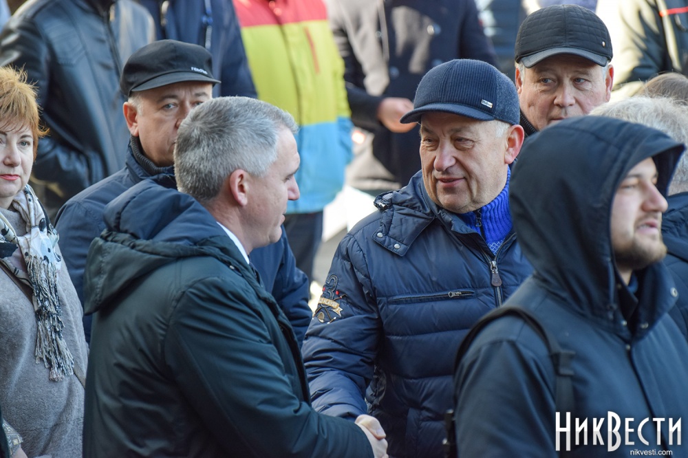 На митинге также присутствуют Николаевский городской голова Александр Сенкевич, Николаевский бизнесмен, нынешний владелец судостроительного завода «Океан» Василий Капацына, народный депутат Украины VII и VIII созыва Артём Ильюк, депутаты Николаевского городского совета Вячеслав Апанасенко, Елена Киселева, Анатолий Дюмин, Вячеслав Карцев и Сергей Карцев.