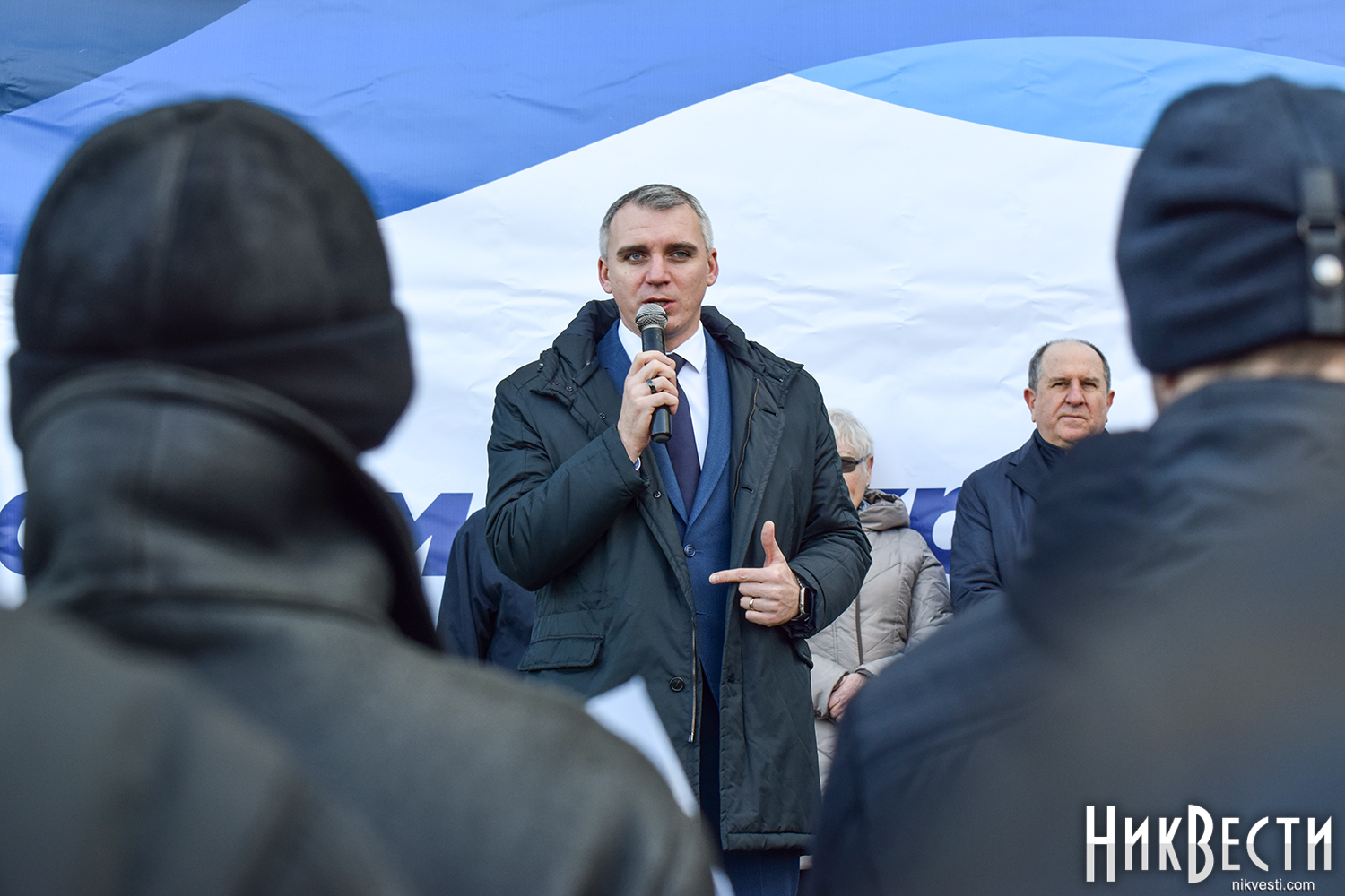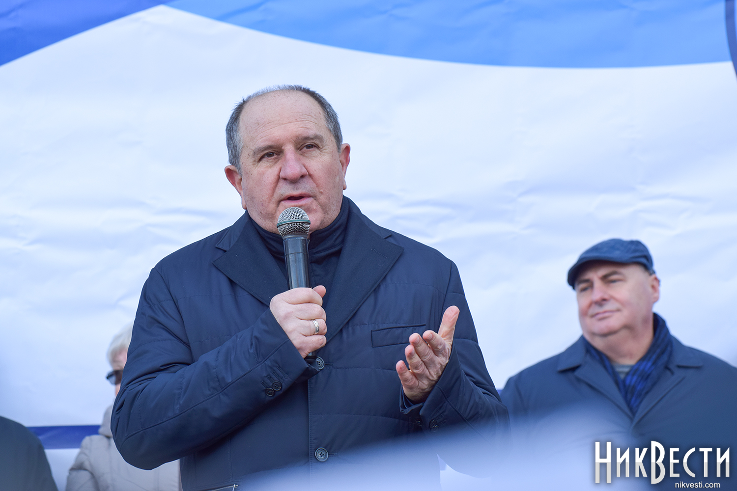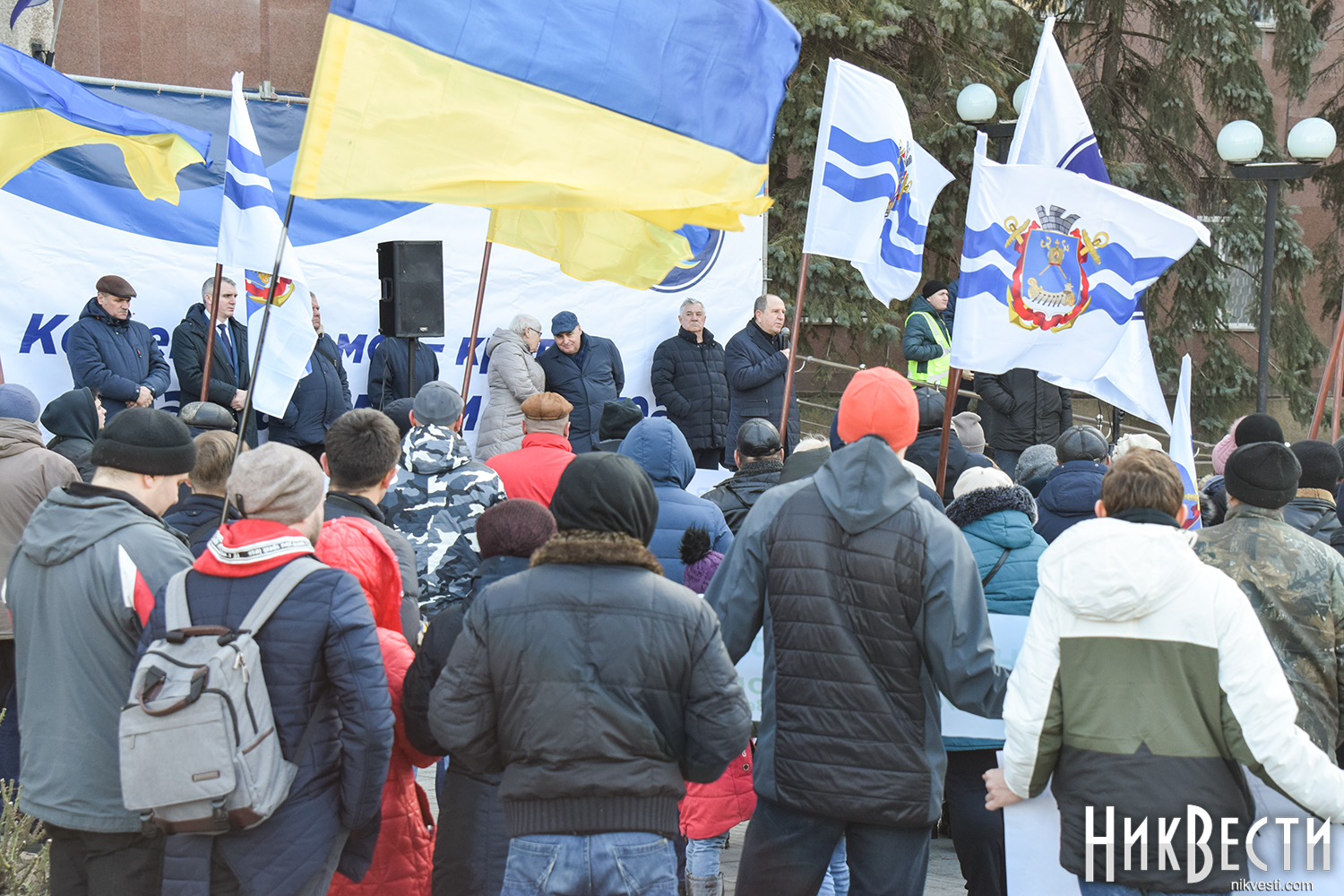 На митинге также присутствуют Николаевский городской голова Александр Сенкевич, Николаевский бизнесмен, нынешний владелец судостроительного завода «Океан» Василий Капацына, народный депутат Украины VII и VIII созыва Артём Ильюк, депутаты Николаевского городского совета Вячеслав Апанасенко, Елена Киселева, Анатолий Дюмин, Вячеслав Карцев и Сергей Карцев.