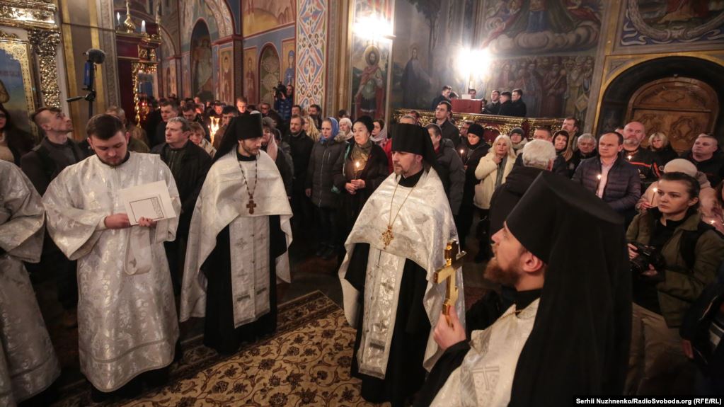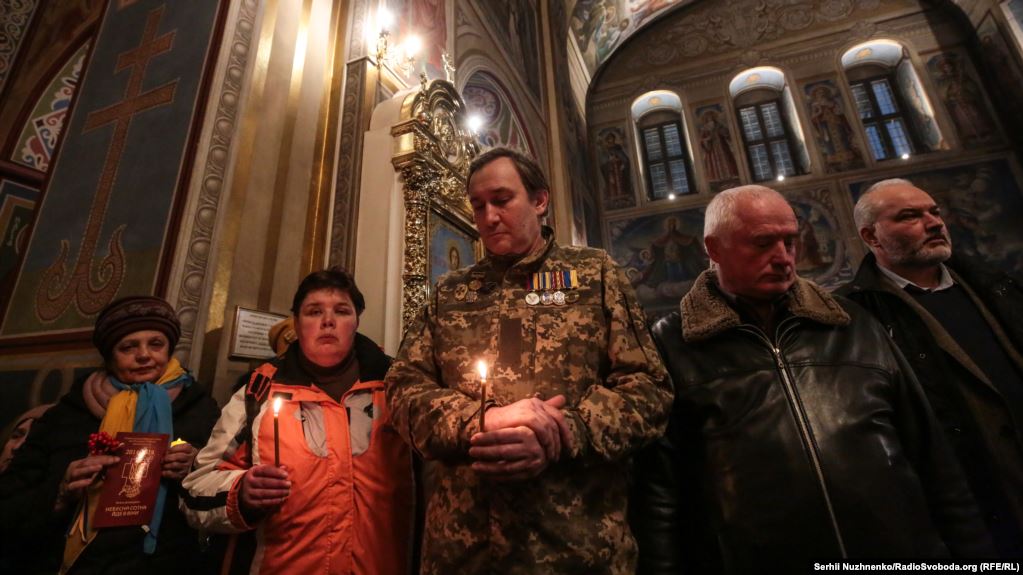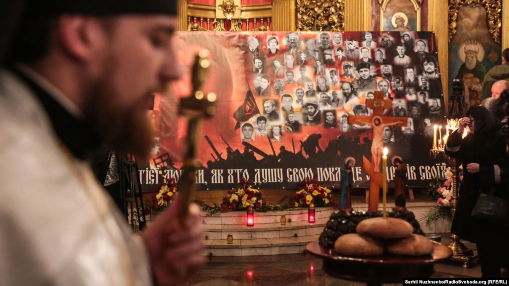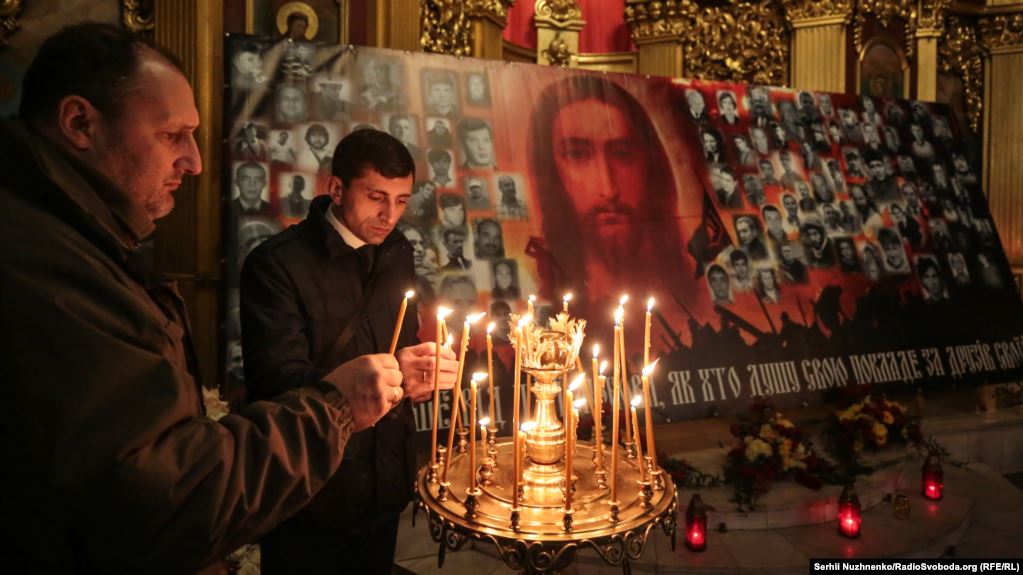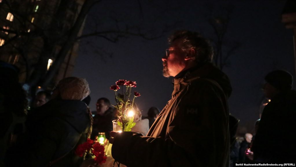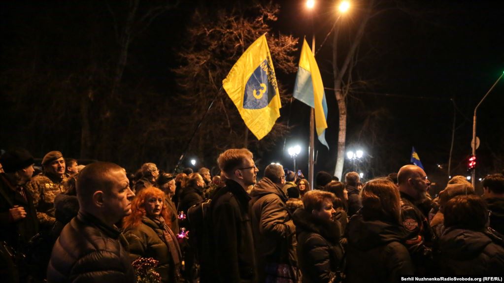 Перед шествием в Михайловском соборе прошла панихида, а затем активисты двинулись с Михайловской площади через центр Киева к аллее Героев Небесной Сотни, сообщает Радио Свобода.