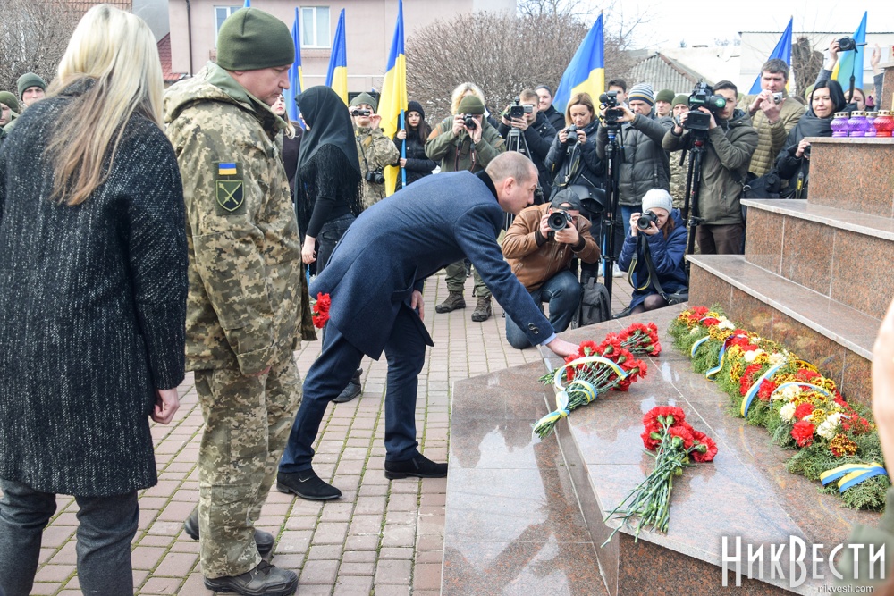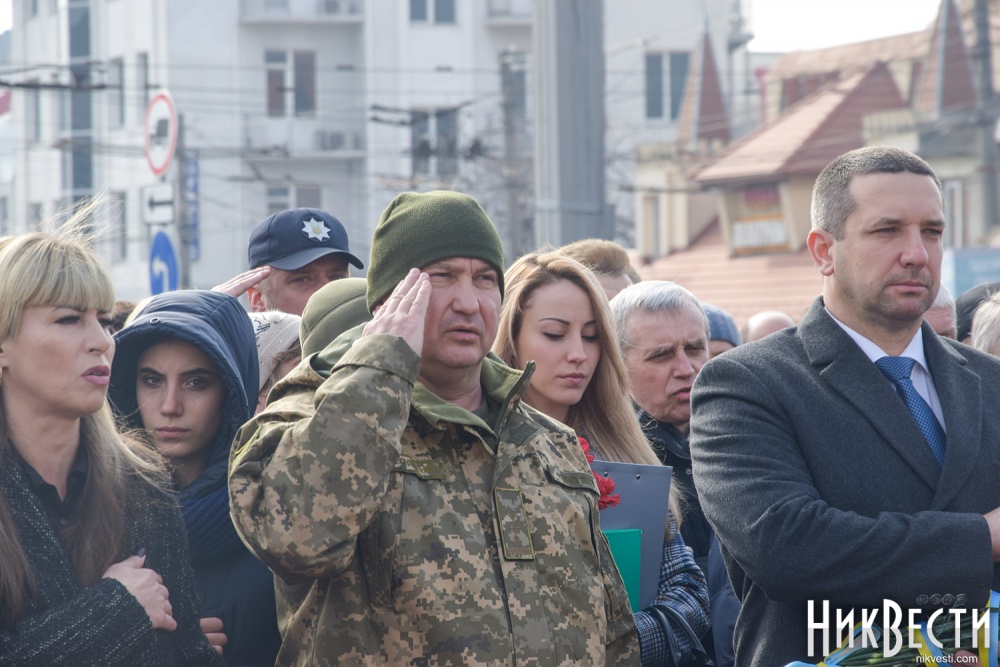 Среди собравшихся был глава Николаевской ОГА Александр Стадник, заместитель Николаевского городского головы Юрий Степанец, чиновники, военнослужащие, волонтеры и участники Революции Достоинства.