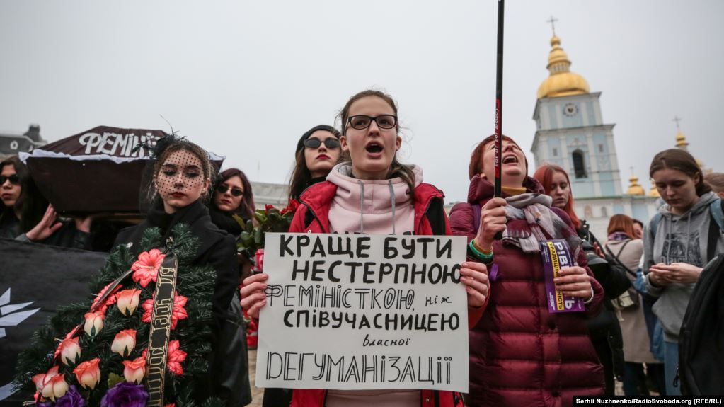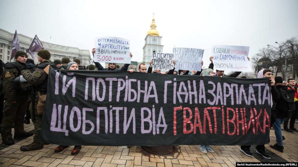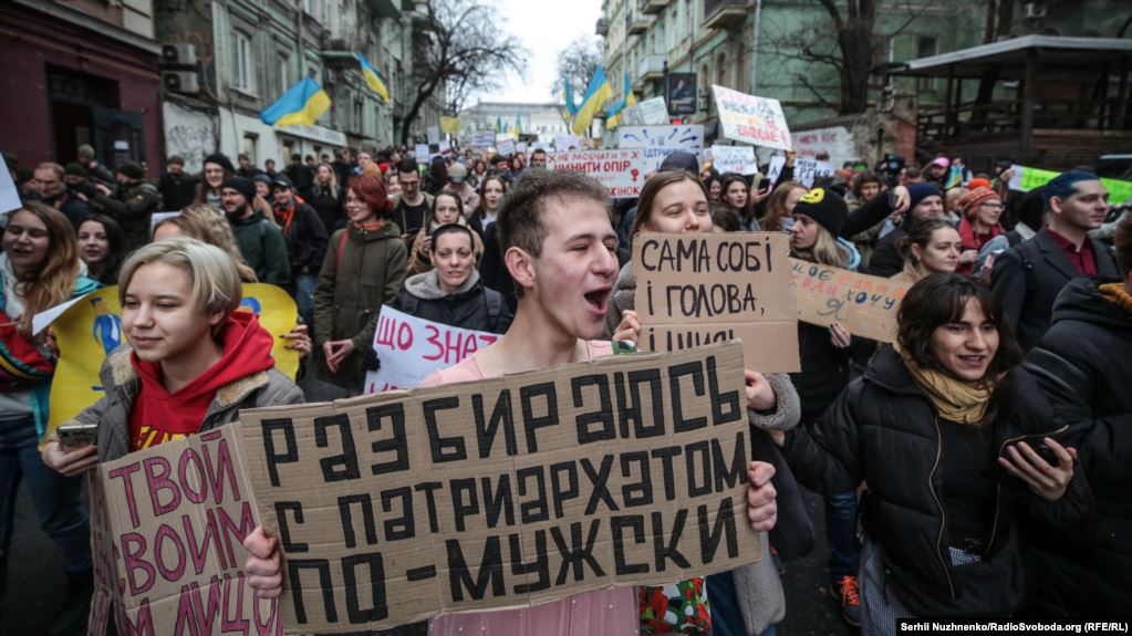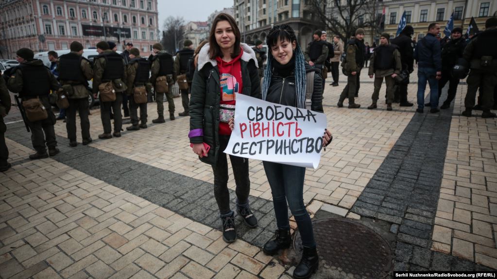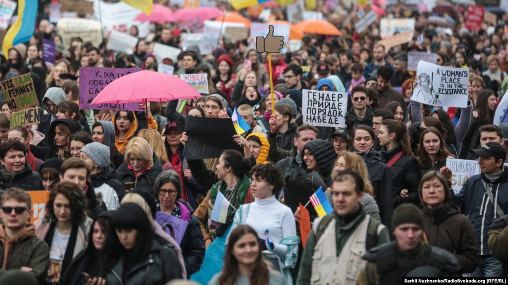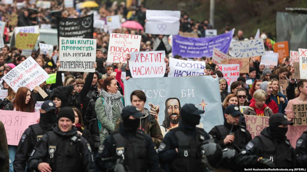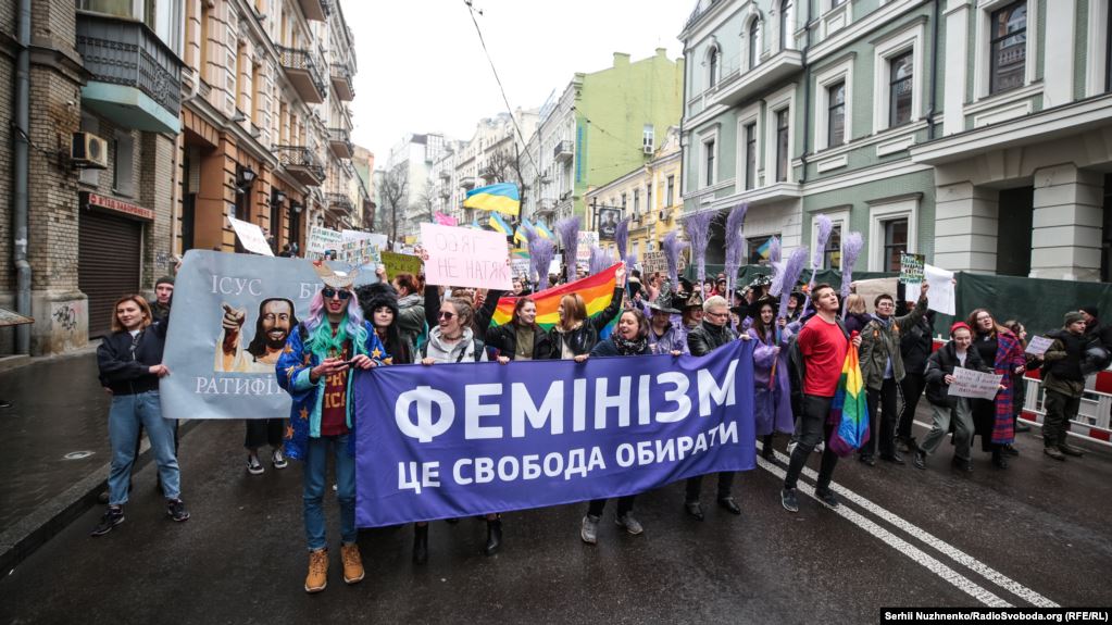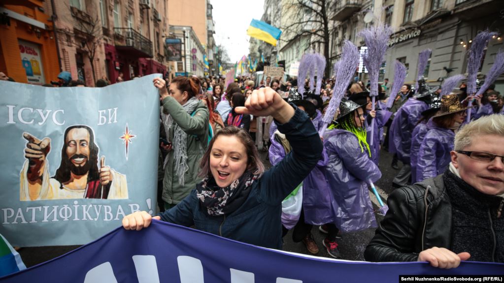 В центре Киеве 8 марта состоялась акция «Марш женщин», участники которой требовали от депутатов ратифицировать Стамбульскую конвенцию и выступали за гендерное равенство в обществе. Демонстранты собрались на Михайловской площади и прошли маршем до Почтовой площади.