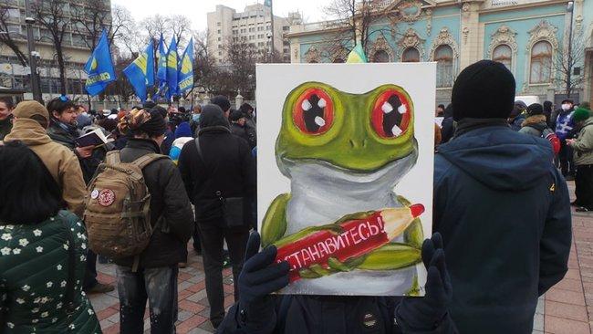 «Говорить о бездеятельности парламента — это манипуляция Президента. Уважаемые народные избранники, сегодня от вашей позиции, от вашего нежелания участвовать в преступных действиях Зеленского, зависит существование Украины как независимого демократического государства. А президента предупреждаем, что мы не позволим принять никакие антигосударственные решения, как бы этого не хотелось ему и Ермаку и ни один карантин нас не остановит в ситуации, когда нужно спасать страну», — заявили организаторы акции.