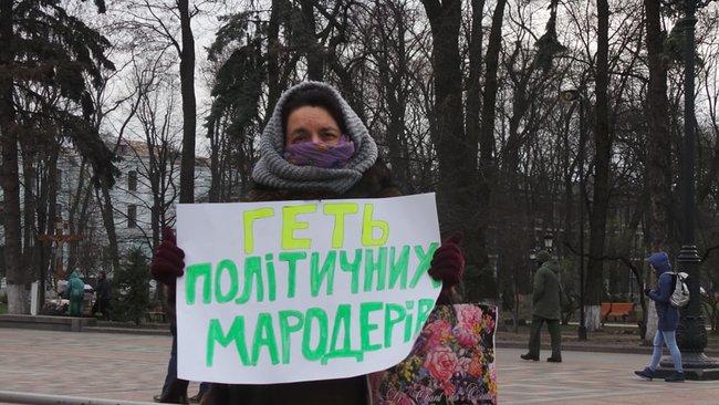 «Зеленский вместо того чтобы объединить нацию в борьбе против коронавируса идет на узурпацию власти с целью принятия антигосударственных решений. В своем обращении он вышел за пределы своих конституционных полномочий. И ломает парламент через колено. Требует отречься от решения о политическом карантине, которое принял Согласительный совет. В Украине парламентско-президентская форма правления, и Верховная Рада без указаний из Офиса Президента способна решить в каком режиме работать. Парламент может спокойно работать в режиме внеочередных заседаний, если для этого будет необходимость. Также депутаты будут работать в комитетах», — заявили организаторы акции.