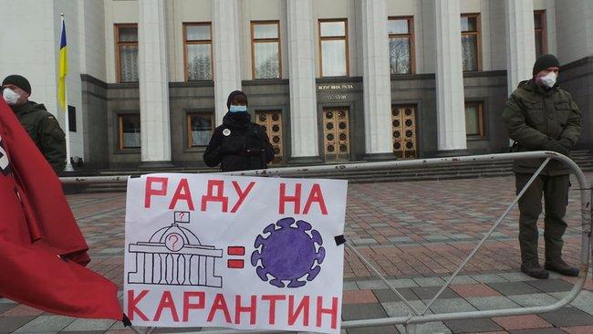 «Геть вірус зРади»: активисты пикетировали ВР с требованием, чтобы парламент ушел на политический карантин