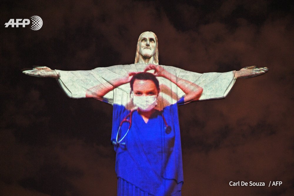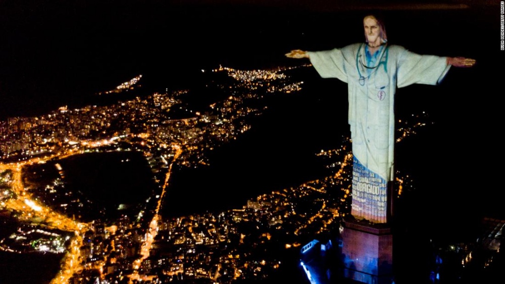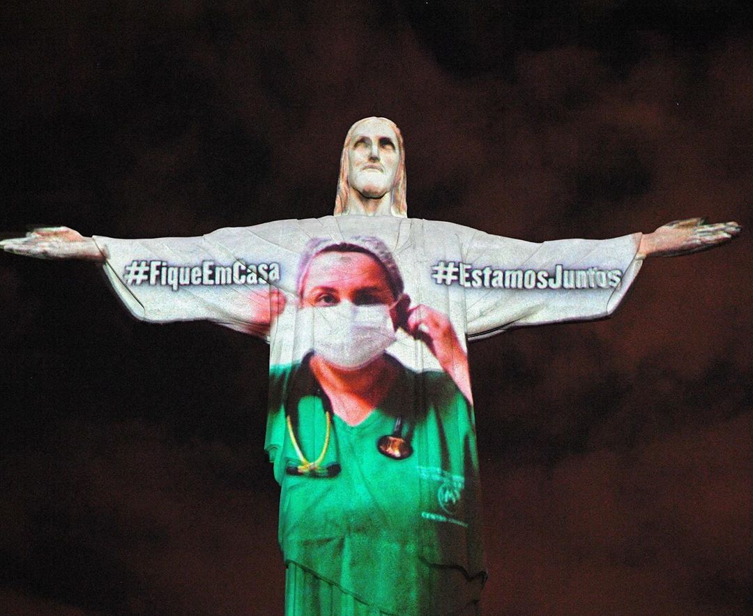 Также статуя была подсвечена изображениями передовых медицинских работников, которые борются с пандемией коронавируса по всему миру. При этом рука Христа-Искупителя была подсвечена слоганом «Оставайся дома» («Fique Em Casa»).