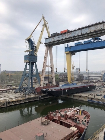 На николаевском судостроительном заводе «Океан» успешно спустили на воду 2 однотипные сухогрузные баржи для нидерландской судоходной компании «Eurobulk».