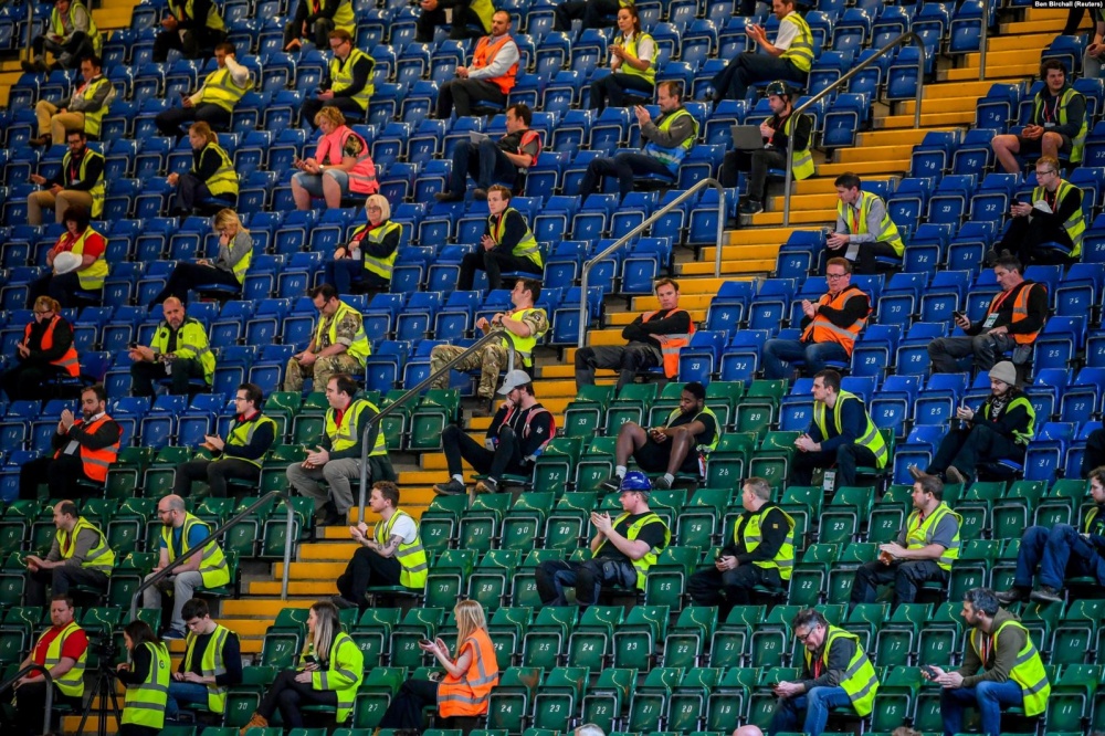 12. Люди на стадионе придерживаются дистанции в условиях карантина во время выступления принца Чарльза.