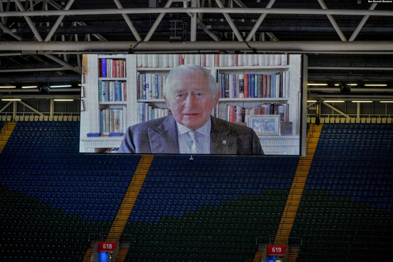 11. Принц Чарльз выступает во время официального открытия новой больницы Dragon's Heart Hospital, построенной на стадионе княжества для ухода за больными коронавирусом. Город Кардифф, Уэльс.