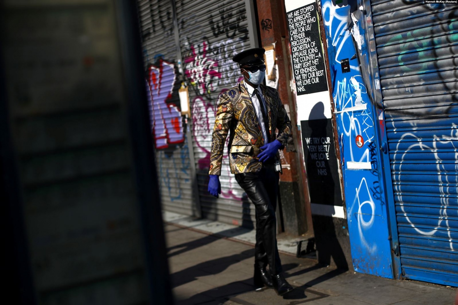 13. Интересный факт: в Великобритании более полумиллиона англичан подписали петицию в комитет отличий (Honours Committee) с призывом дать рыцарское звание 99-летнему отставному капитану Тому Муру, который собрал более 18 миллионов фунтов стерлингов для помощи медикам в борьбе с коронавирусом. На фото человек в защитной маске в районе Пэкхэм в Лондоне.