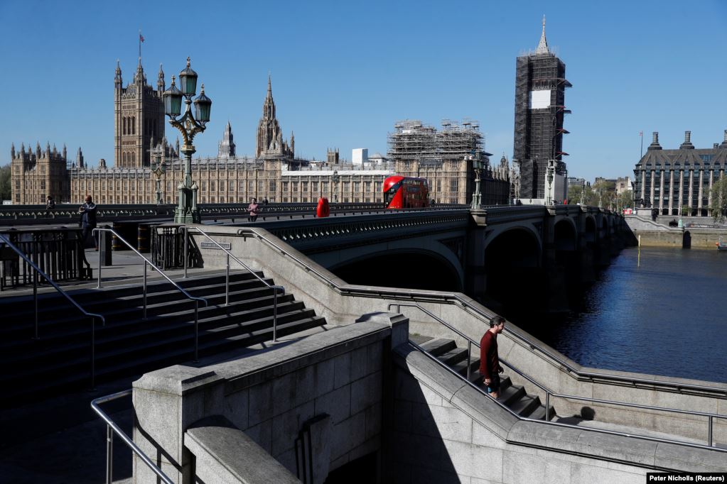 1. В Великобритании карантин ввели 23 марта. Страна стала одной из последних в Европе, которая ввела ограничения в связи с распространением коронавируса. На фото малолюдный центр города, рядом здание парламента и часовая башня Биг Бен, которая является одним из самых популярных туристических объектов Лондона.