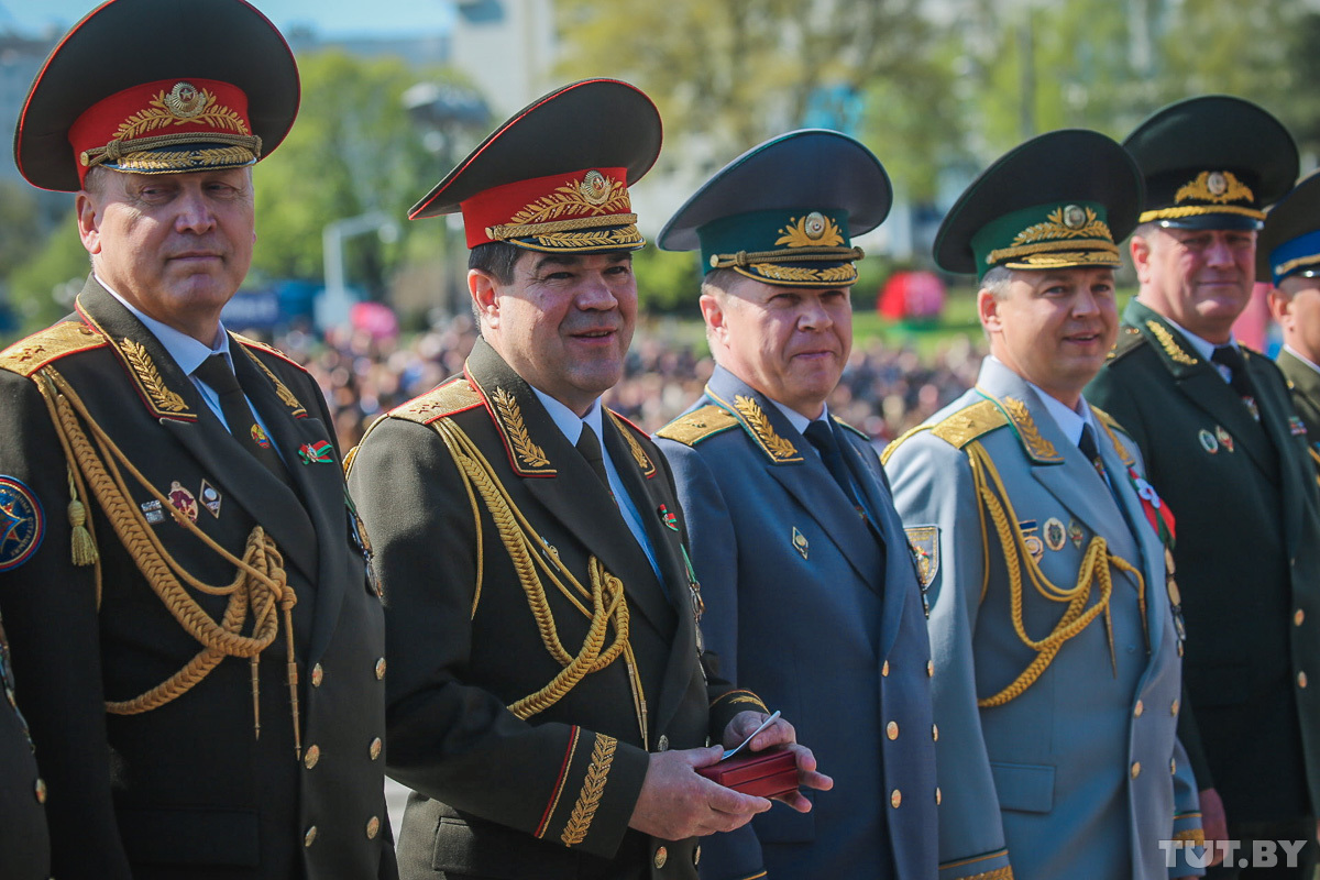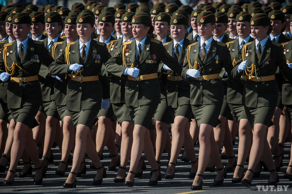 После выступления президента начался марш, перед трибунами прошлись среди первых расчет барабанщиков Суворовского военного училища, сводный расчет кадетских училищ и специализированных лицеев, курсанты Военной академии, пограничники, спасатели и сотрудники МВД. Строем прошлись также женщины-военнослужащие.
