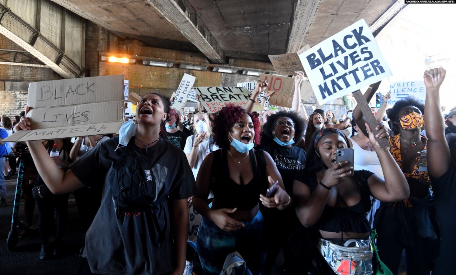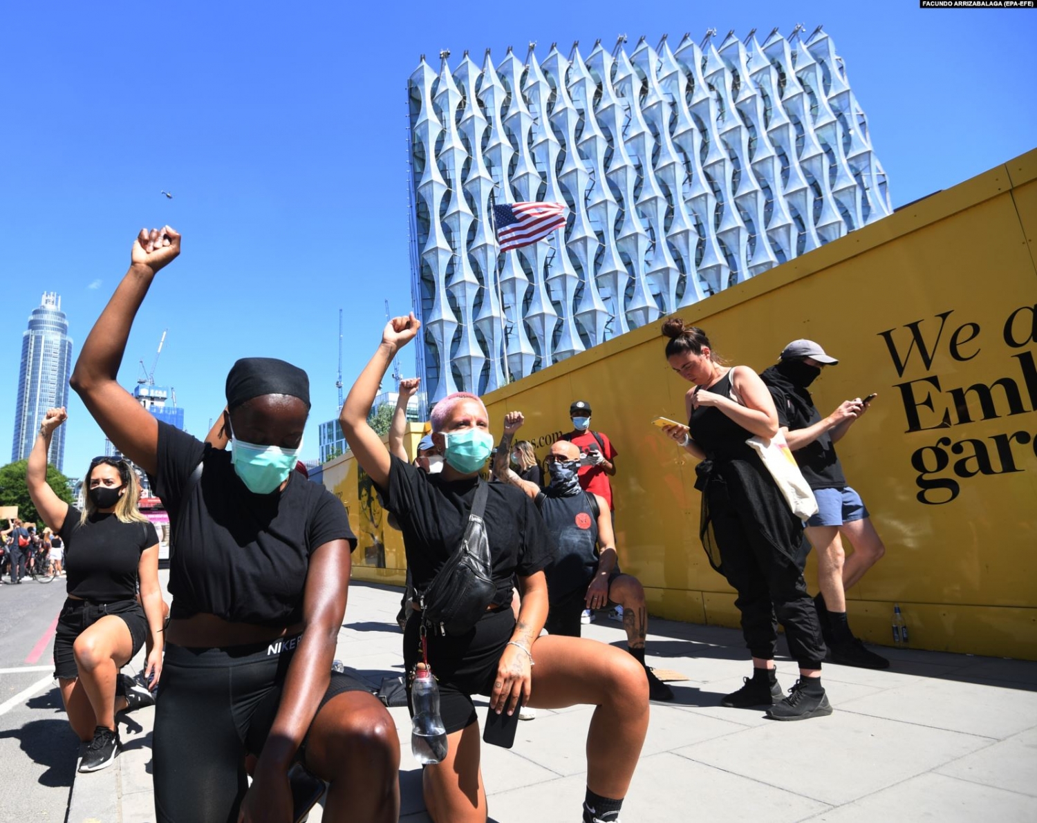 В Лондоне толпа собралась перед посольством США и также выразила протест в связи с гибелью Джорджа Флойда и политикой президента Трампа.