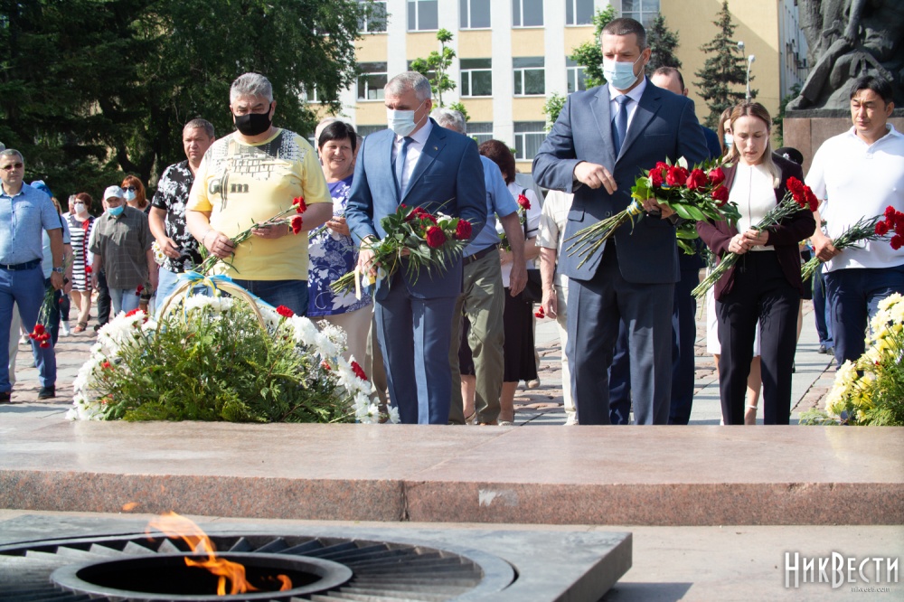 Сегодня, 22 июня, в Николаеве горожане приняли участие в возложении цветов к Вечному огню возле мемориала Героям-ольшанцам.
