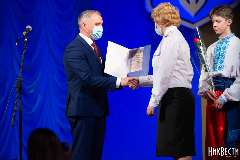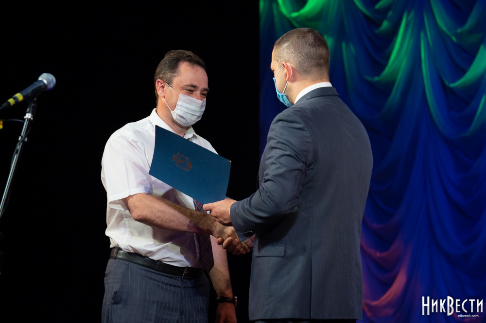 Мэр вручил Почетные грамоты городского головы капитану Виктору Вердешу, старшему офицеру отделения боевой и специальной подготовки ВЧ 3039 Национальной гвардии Украины; подполковнику Владимиру Торшину, командиру самоходно-артиллерийского дивизиона бригадной артиллерийской группы 36 отдельной бригады морской пехоты имени контр-адмирада Михаила Белинского ВМС ВС Украины; Маргарите Прокопцовой, помощнику судьи Хозяйственного суда Николаевской области; подполковнику внутренней службы Ирине Морозюк, заместителю начальника Корабельного районного отдела филиала государственного учреждения Центр пробации в Николаевской области; Виктору Бойко, главному специалисту управления по вопросам ЧС и ЦЗН горсовета.