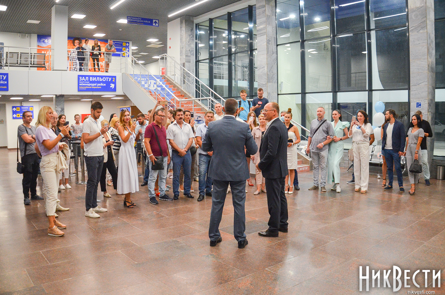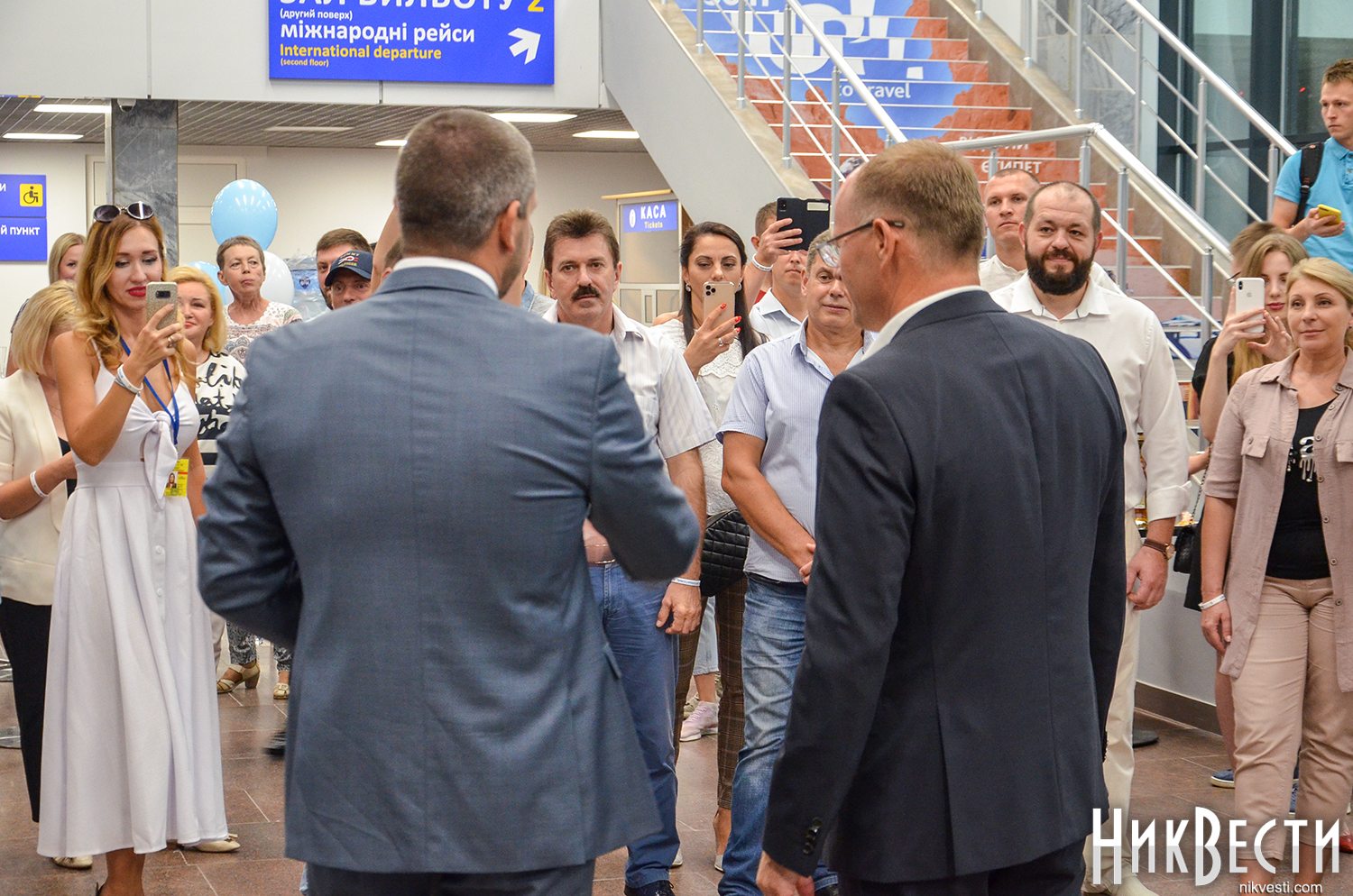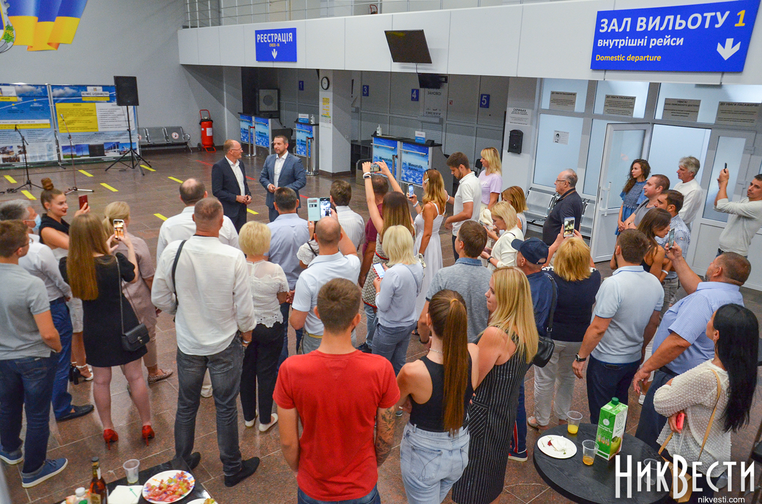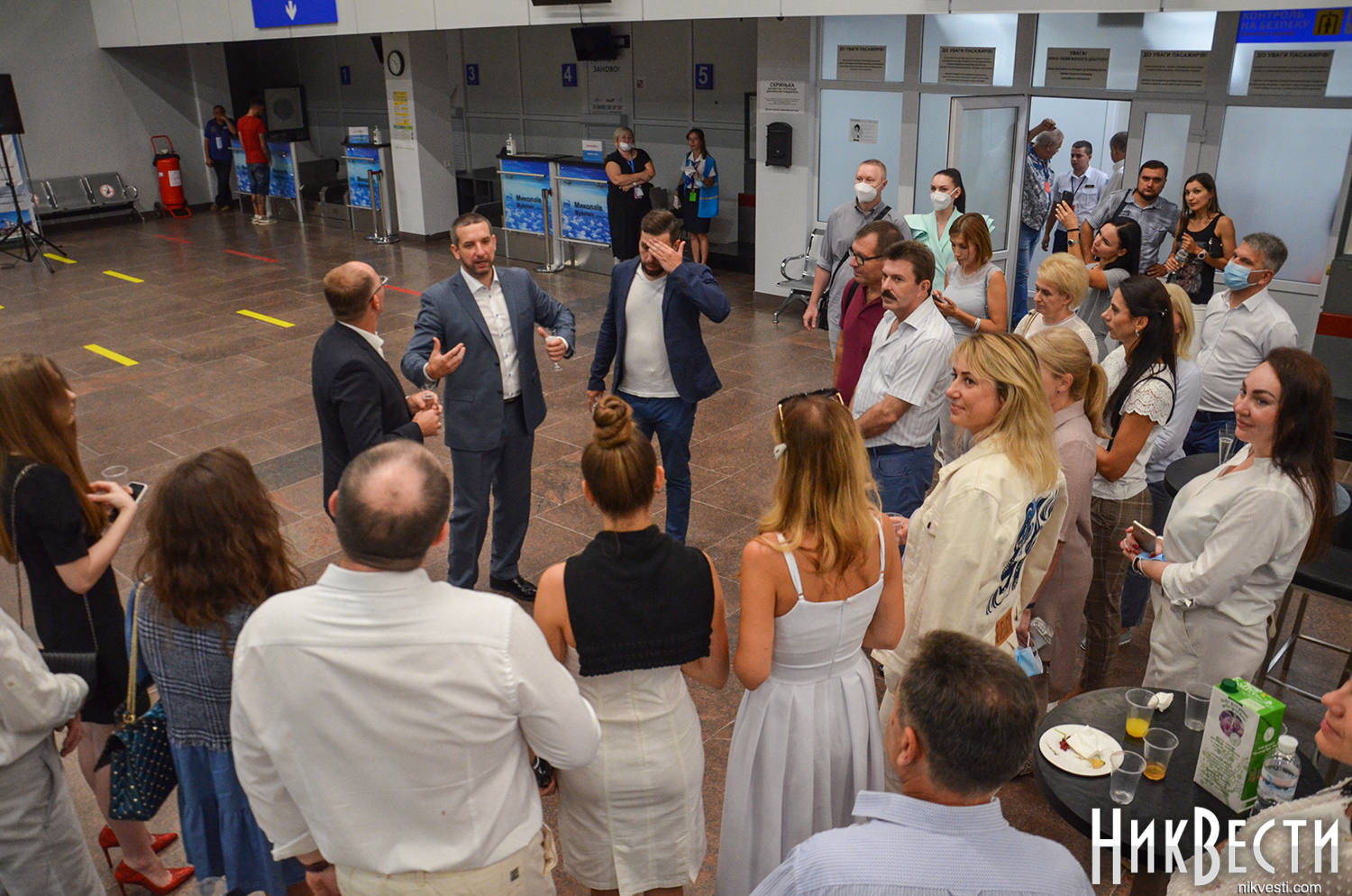 Встречали первых пассажиров из столицы директор аэропорта Федор Барна, глава Николаевской ОГА Александр Стадник, его заместители Александр Трайтли и Татьяна Стахевич, депутаты областного совета Григорий Ташлык, Геннадий Рубский, Петр Паламарюк и Виктор Сторчеус, глава общественной организации «Майбутнє Миколаєва» Татьяна Домбровская, представитель объединения бизнесменов «МрійДій» Максим Бревда и многие другие.