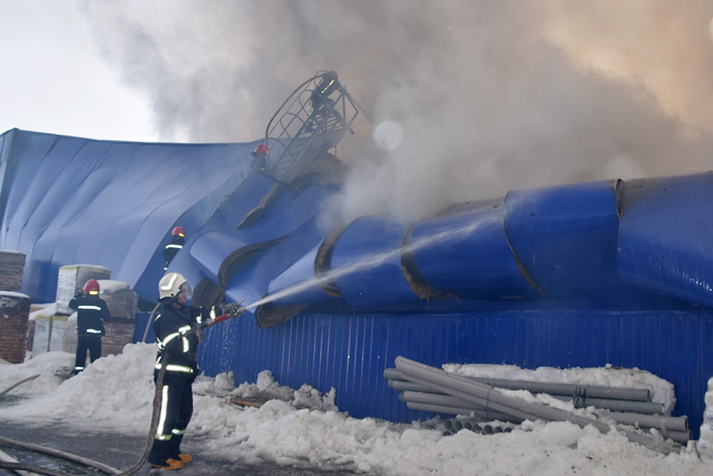 Спасатели опубликовали фото и видео борьбы с масштабным пожаром торгового центра «Эпицентр» в городе Первомайск Николаевской области, который произошел 2 февраля.