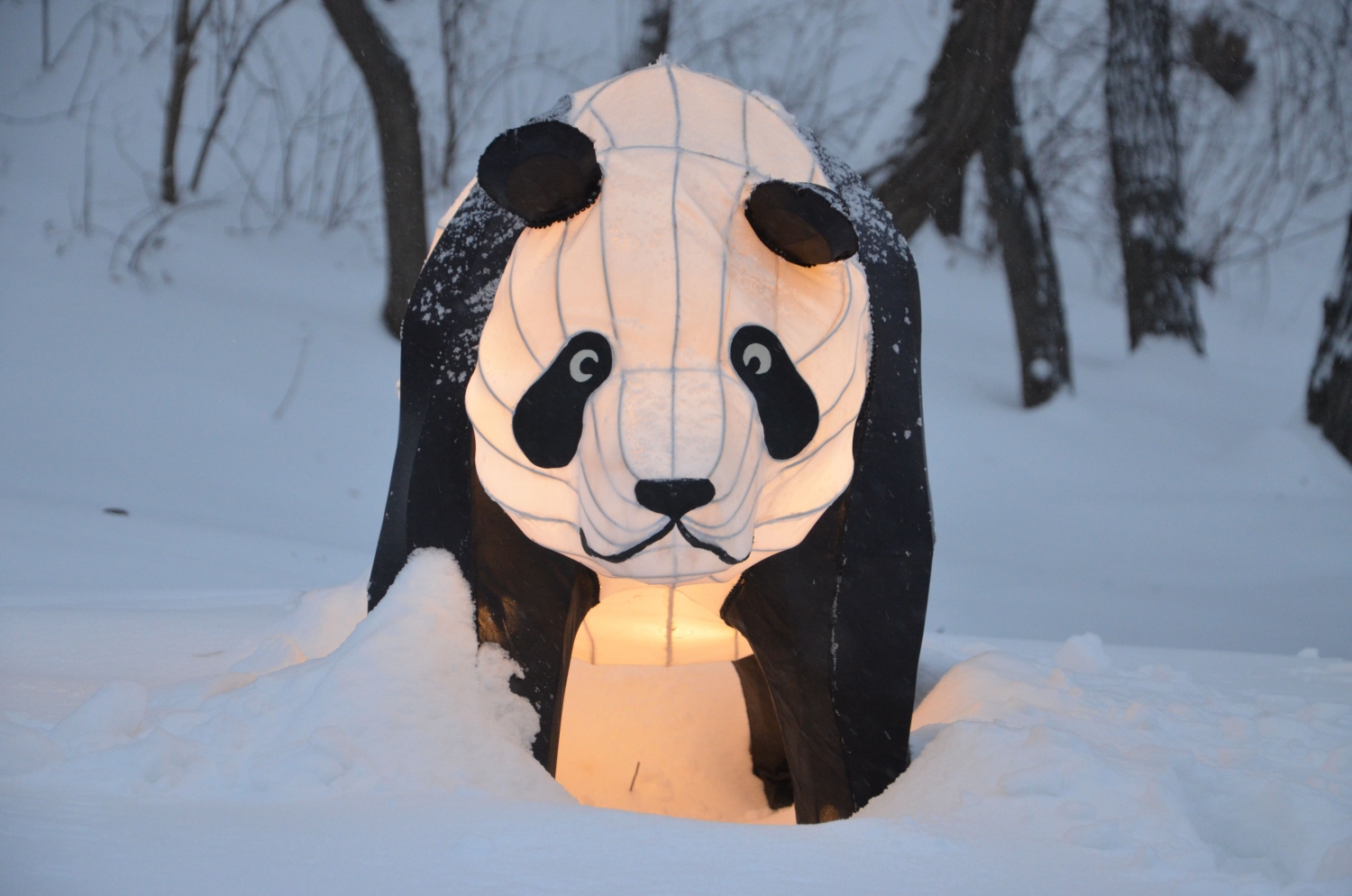 Одни инсталляции оформлены в виде забавных панд, другие - как сказочный лес.
