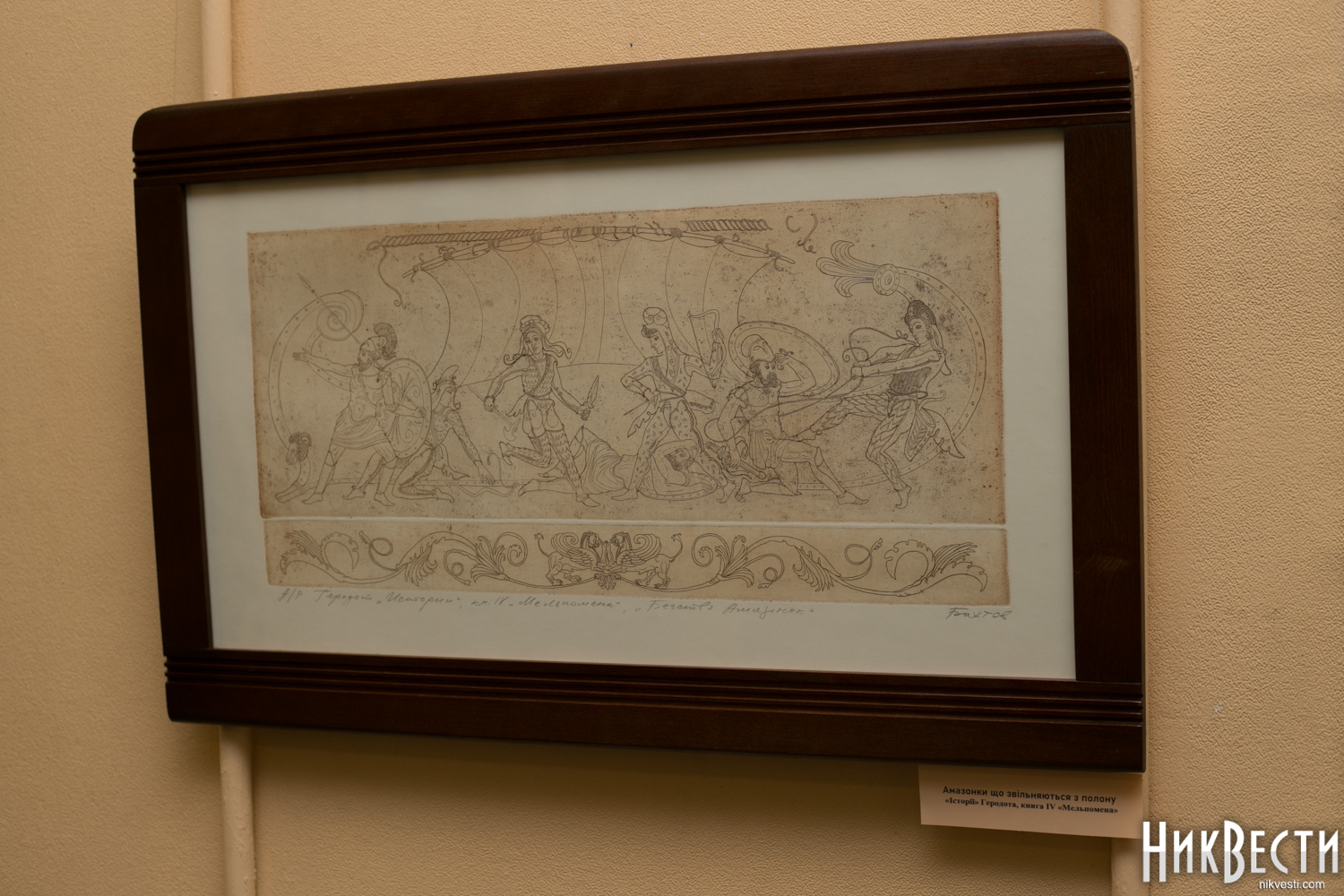 В рамках мероприятия известный художник выставил цикл произведений, вдохновленный поэмой Лины Костенко «Скифская Одиссея», а также работой древнегреческого историка Геродота «История Книга ІV: Мельпомена», описавшей какие нравы царили на территории нынешнего юга Украины в VI-IV до н.э, когда на этих землях прочно обосновался кочевой народ — скифы.