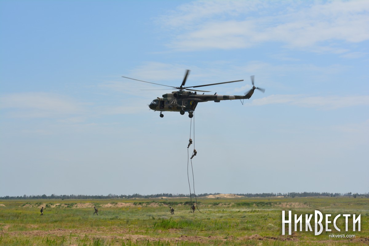 Также отдельный батальон ВМС Украины совершил десантирования с по безпарашутным способом - с помощью системы Канат-М1. Эта тактика позволяет не приземляться вертолету на землю, а провести высадку бойцов на сложном рельефе, крыше дома или на палубе корабля. И, пр необходимости — быструю эвакуацию членов экипажа.