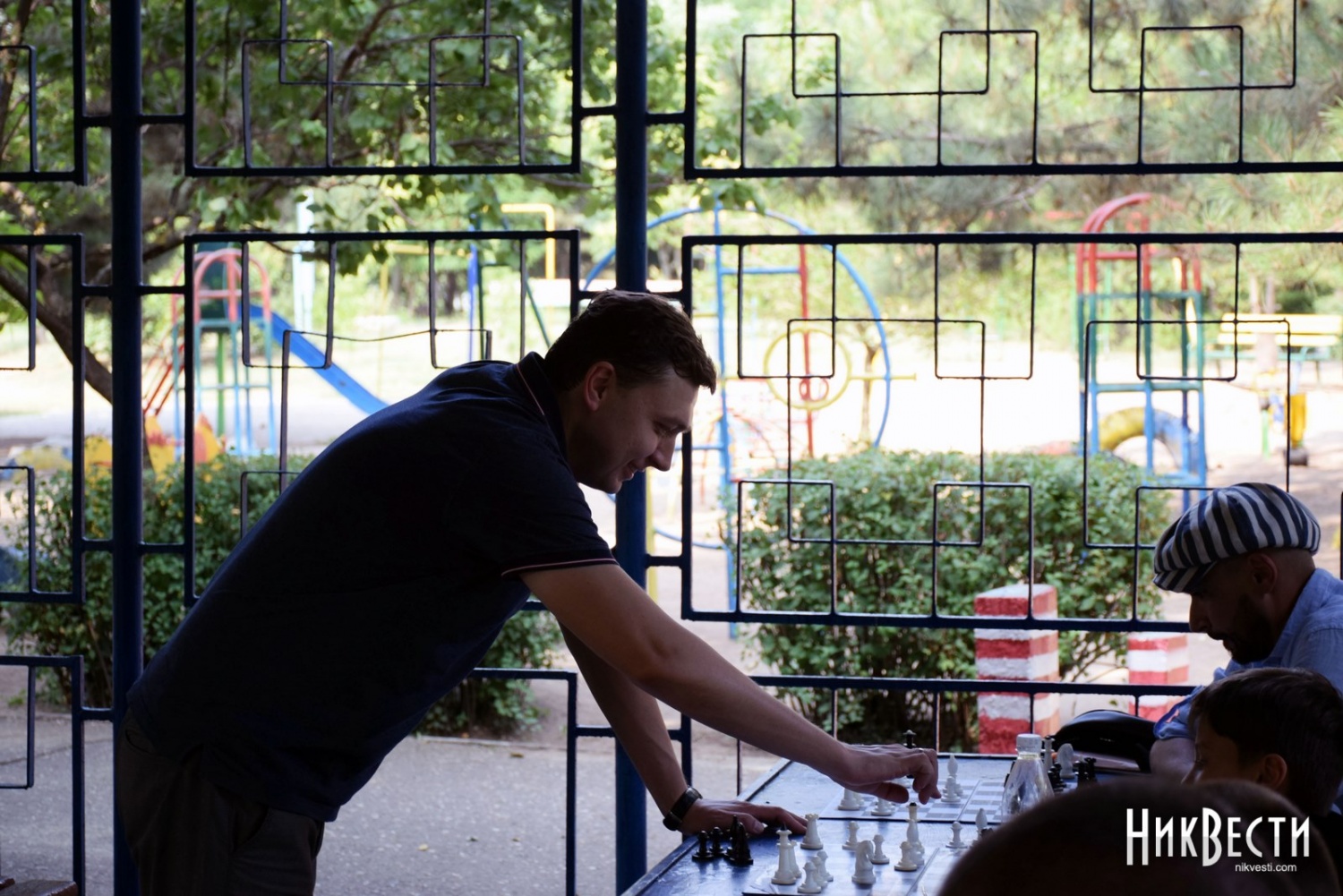 — Сын занимается шахматами полтора года. В этом году он уже получил первый юношеский разряд, выиграл турнир. Он очень любит этот вид спорта, зовет и нас, родителей, и своих друзей. С шахматной доской в школу ходит. Мы живем недалеко от этого павильона и обратили внимание, что он редко используется по своему назначению. Есть идея превратить это место снова в шахматный павильон, чтобы по вечерам сюда приходили дети и взрослые и играли. Чтобы немного продвинуть эту идею, мы предложили Дмитрию провести какое-то мероприятие к Международному дню шахмат. Он поддержал и поделился идеей провести сеанс одновременной игры. Мы пригласили всех желающих. Вообще, я за то, чтобы больше детей играли в шахматы, чтобы в школах открывались кружки, как это было раньше. Есть примеры городов, где шахматы стали очень популярны. Например, во Львове играют в шахматы около 4 тысяч детей, — поделилась Елена Легкая.