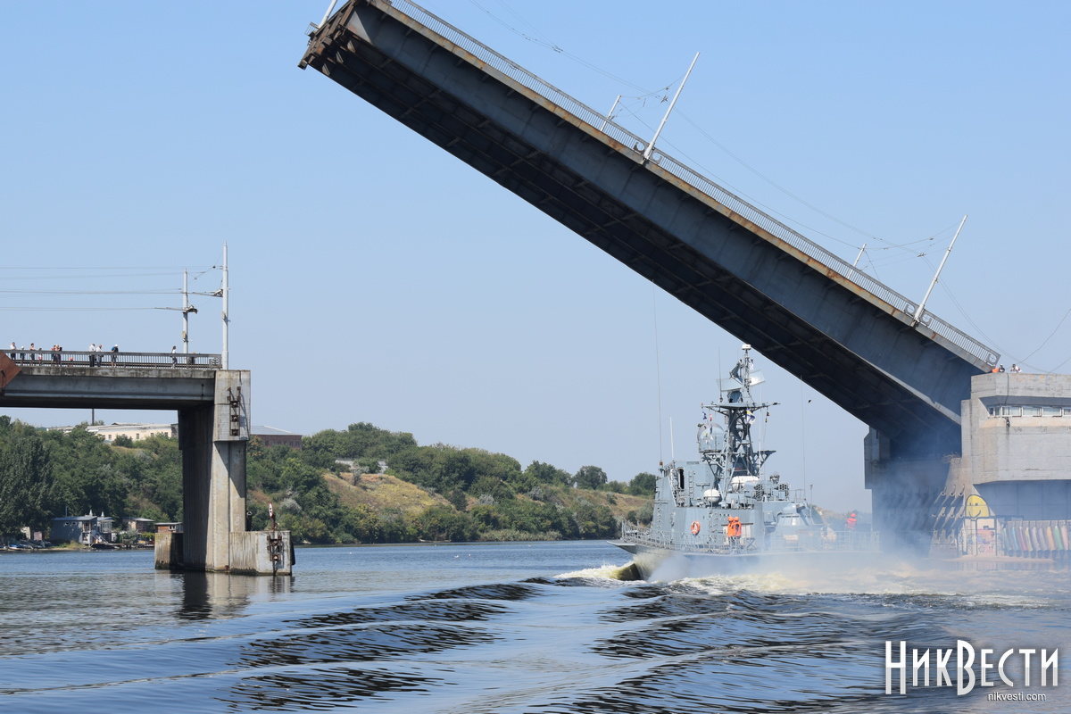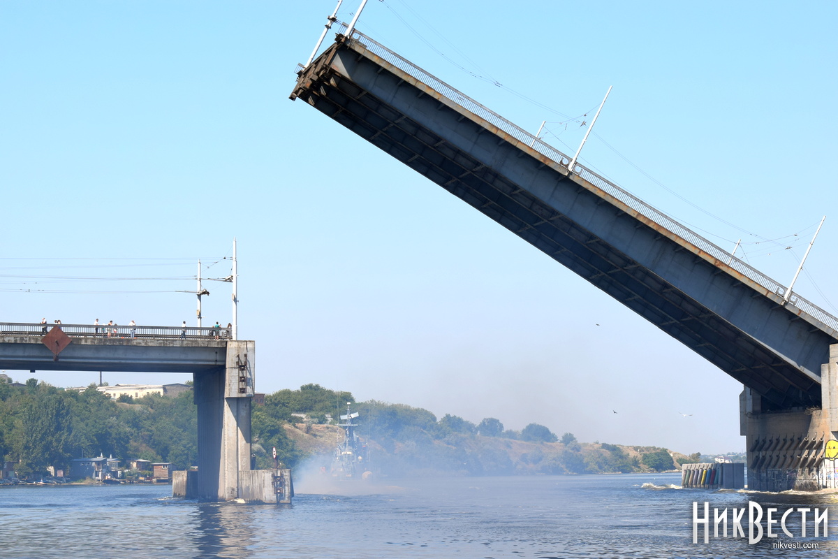 Во вторник, 17 августа, в Николаеве развели понтонный, Ингульский и Варваровский мосты, чтобы выпустить из акватории государственного предприятия «Николаевский судостроительный завод» ракетный катер «Прилуки».