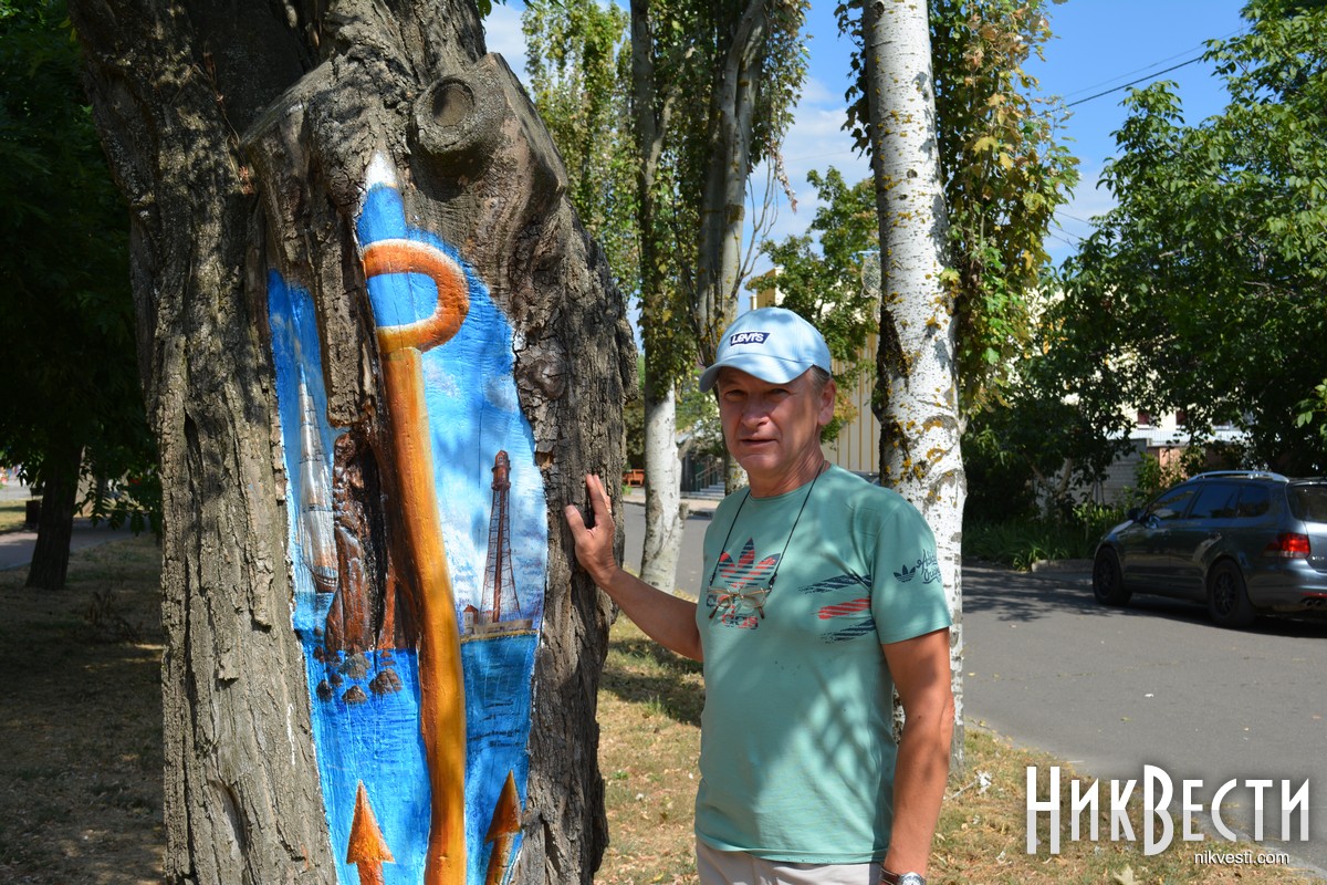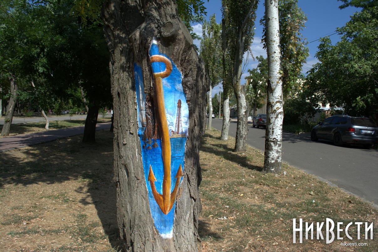 Идея создать новые арт-объекты на деревьях появилась изначально у художника Игоря Пичугина. 7 лет назад он изобразил пост регулирования движения судов «Очаков» Государственного предприятия «Дельта-лоцман» на старой акации. В этом году мастер решил обновить рисунок и разрисовать другие деревья.