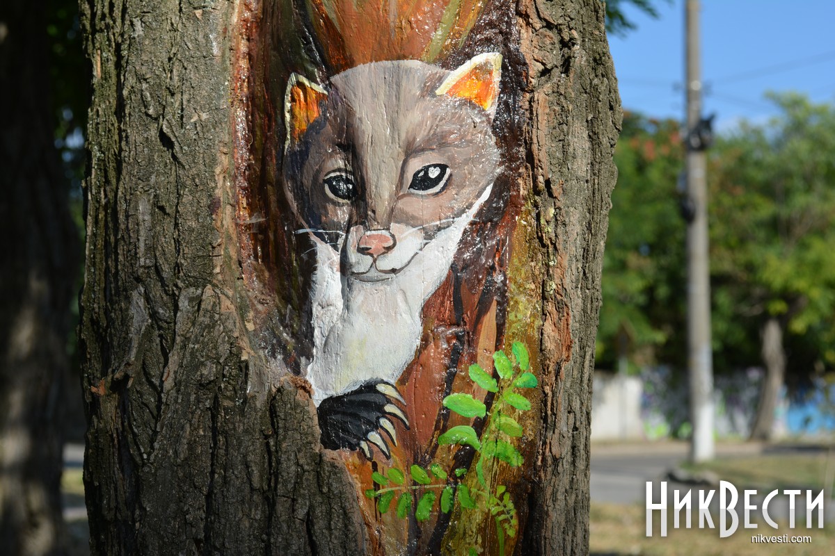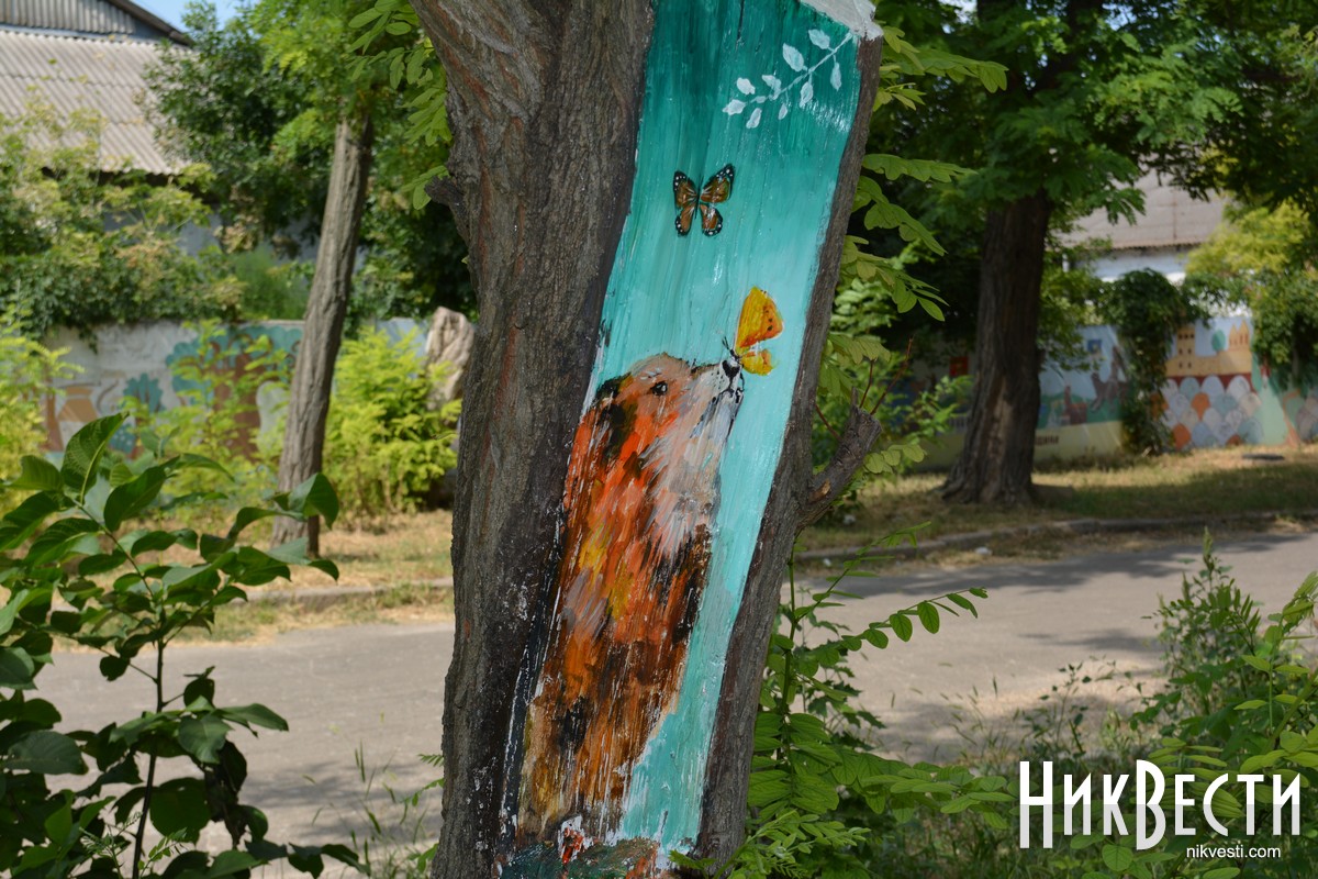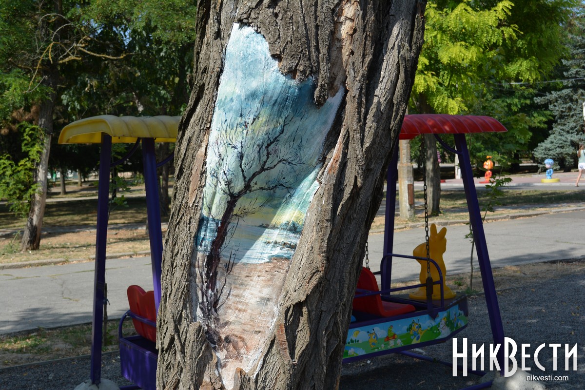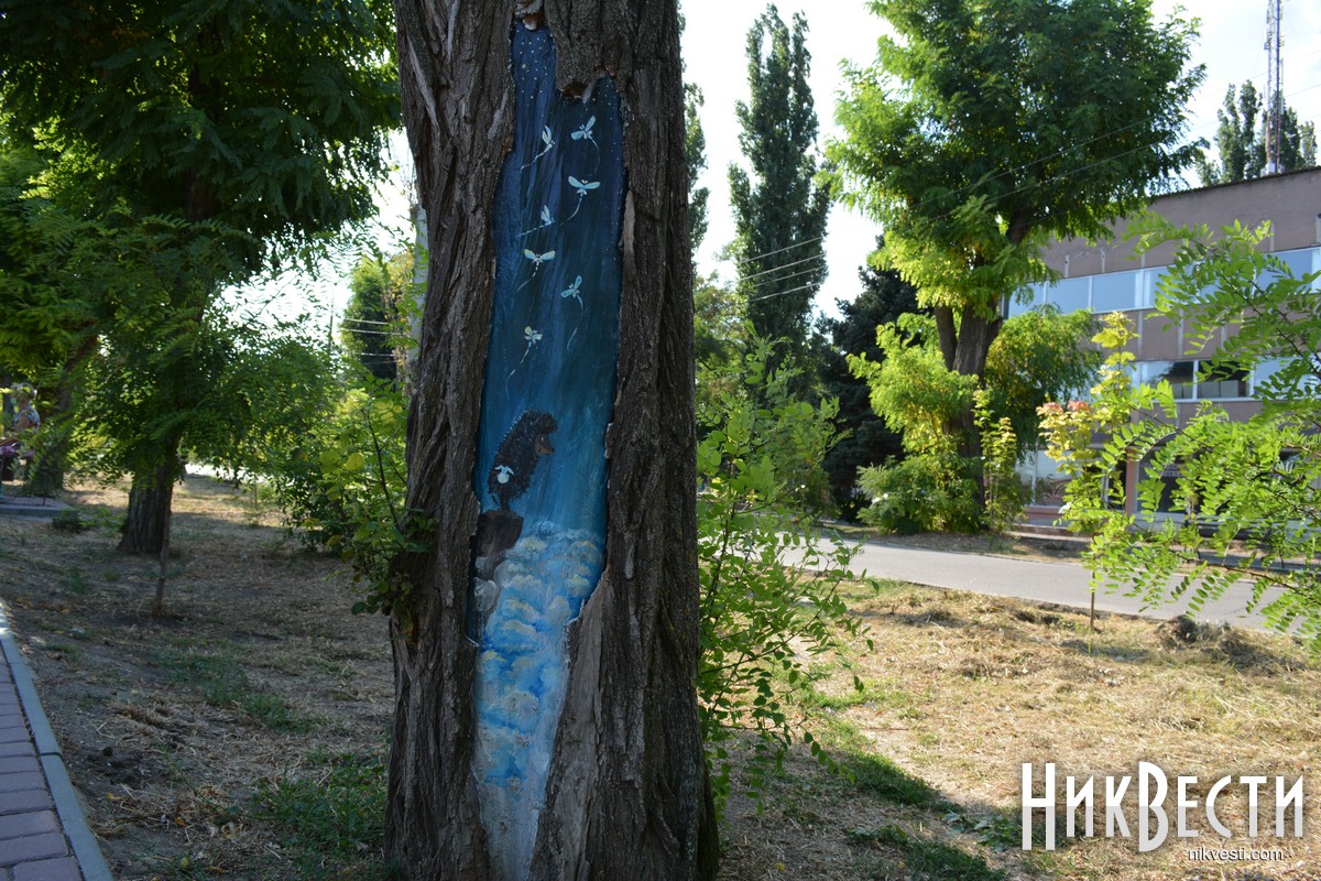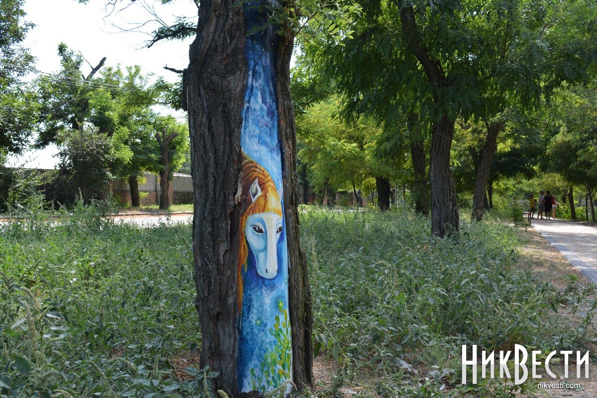 В Очакове местные художники украсили аллею в центральном парке, нарисовав на коре деревьев рисунки с разными сюжетами. Презентовать проект планируют ко Дню города — 10 cентября.