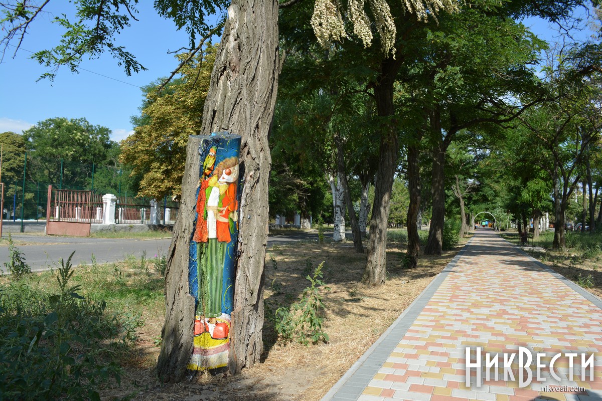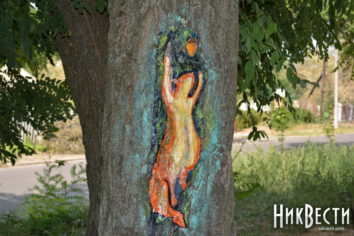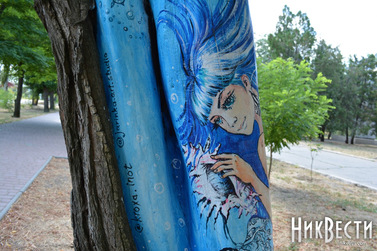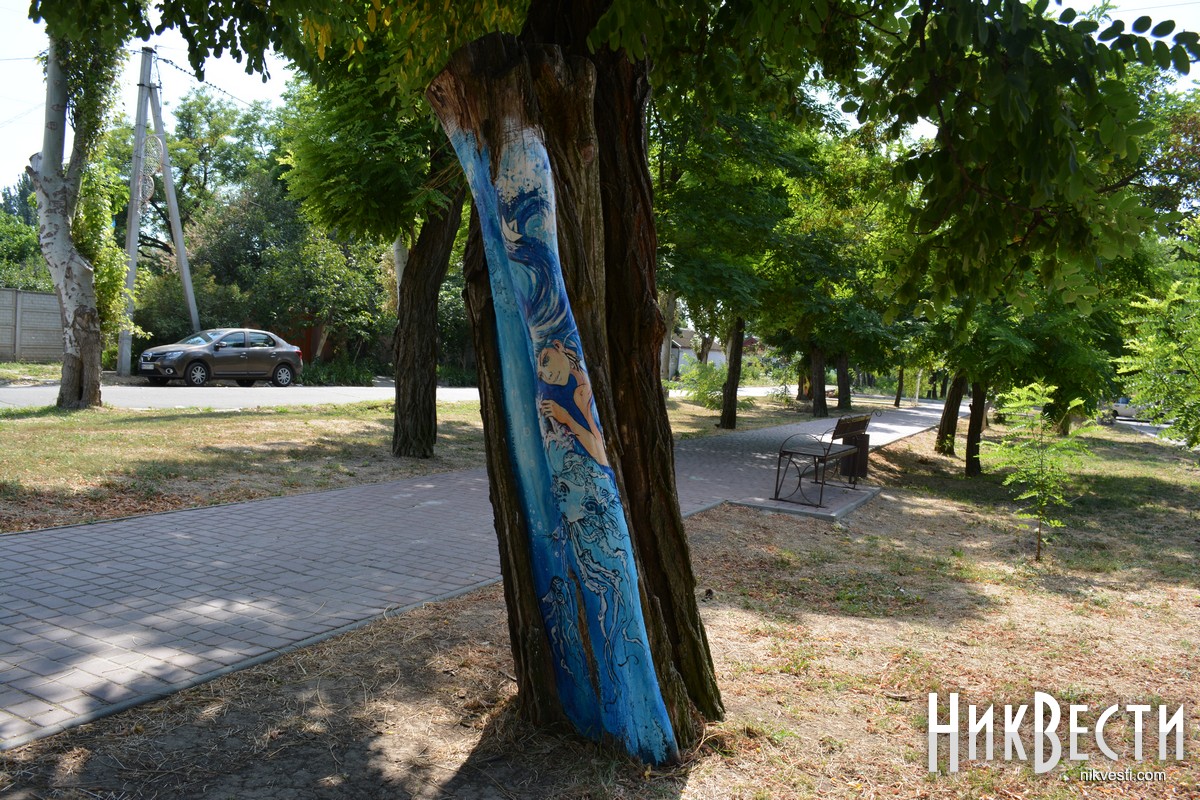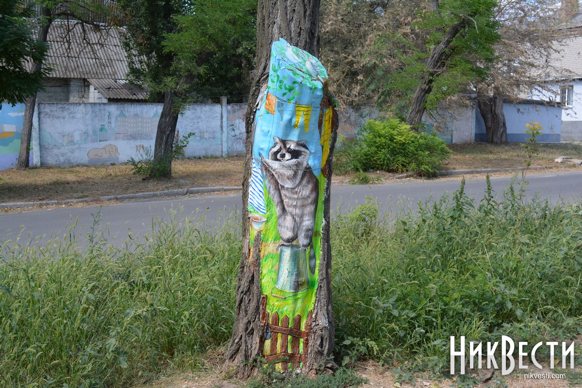 В Очакове местные художники украсили аллею в центральном парке, нарисовав на коре деревьев рисунки с разными сюжетами. Презентовать проект планируют ко Дню города — 10 cентября.