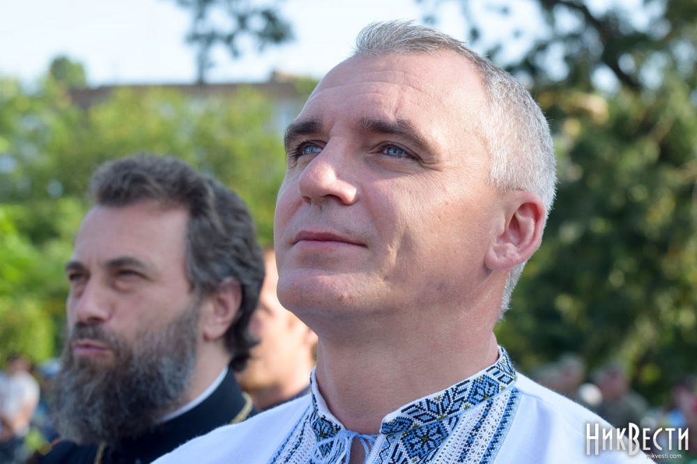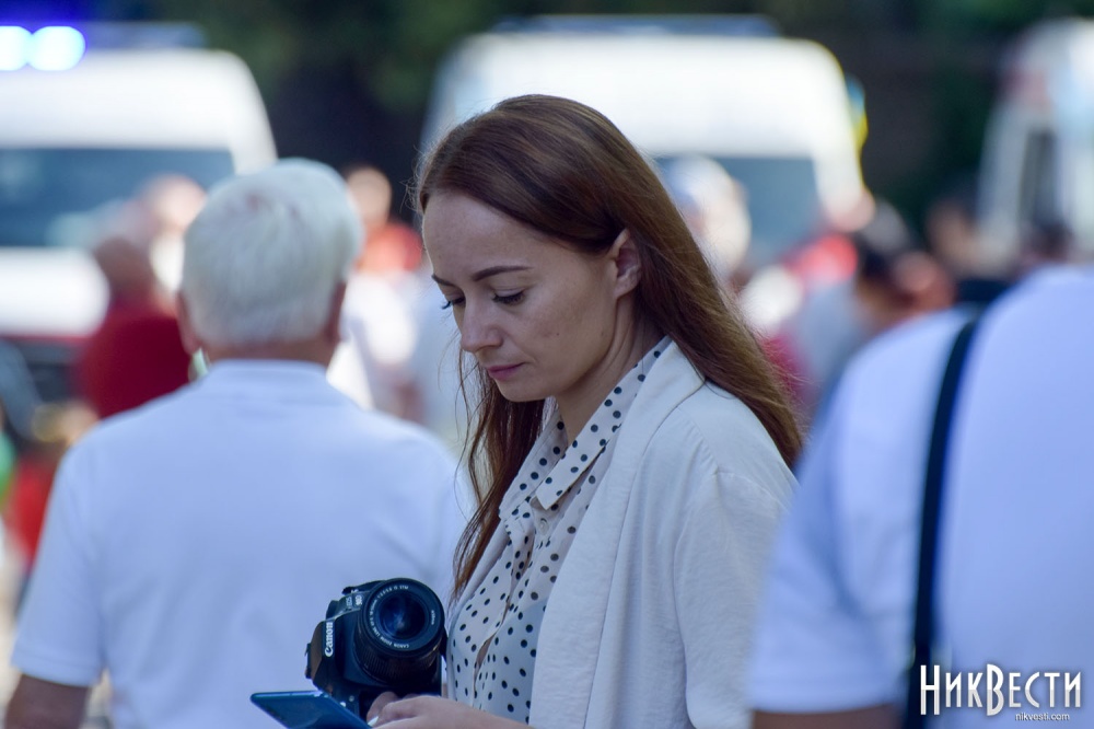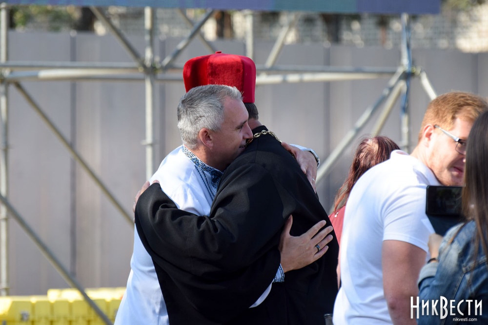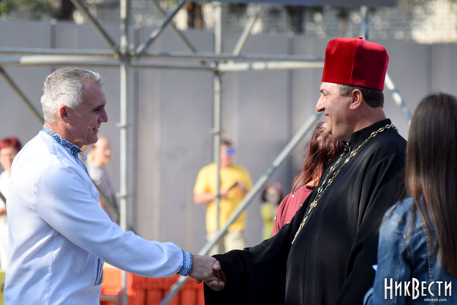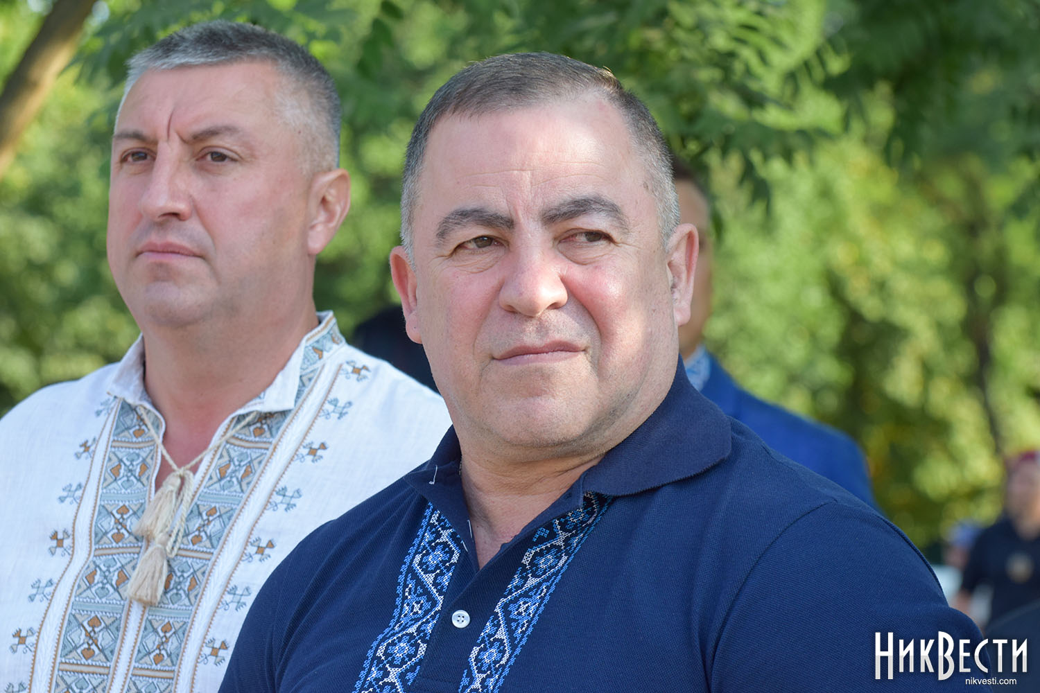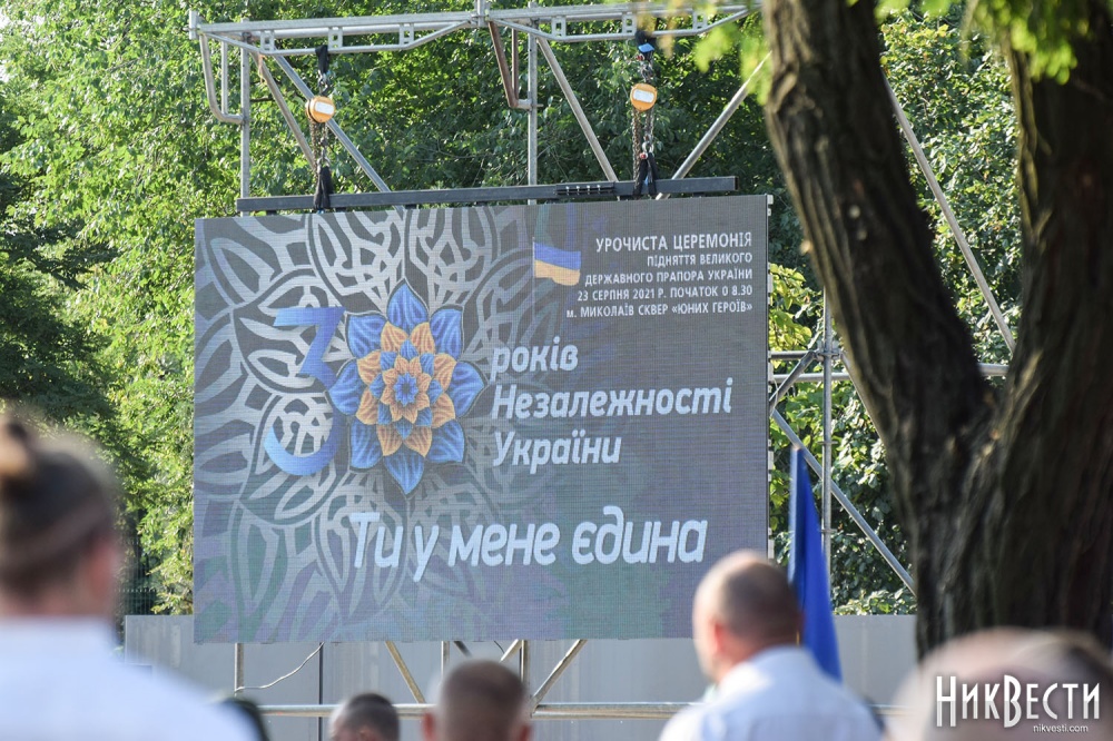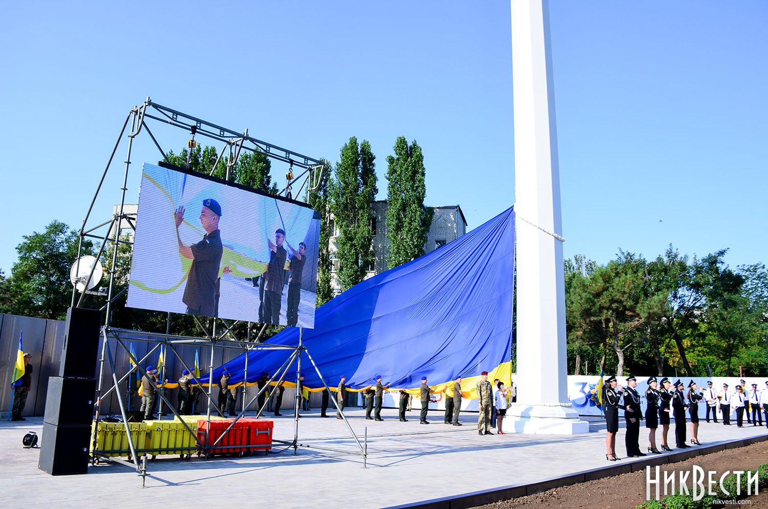 В это же время президент Владимир Зеленский открыл флаг в географическом центре Украины возле села Марьяновка Черкасской области. Его выступление транслировали и на месте церемонии в Николаеве.