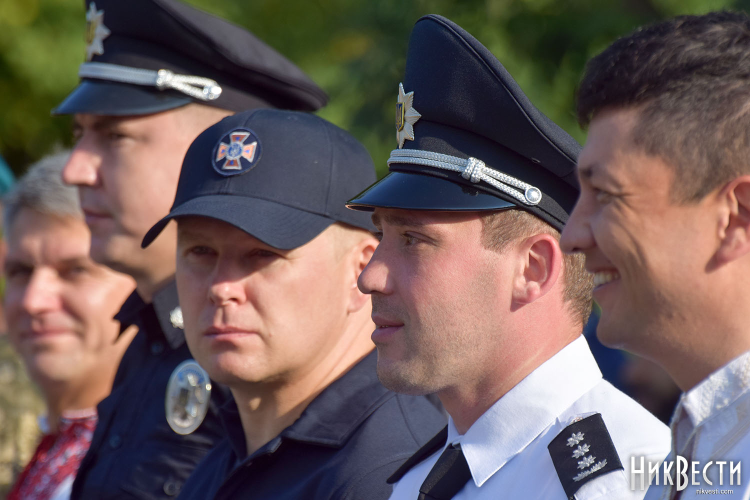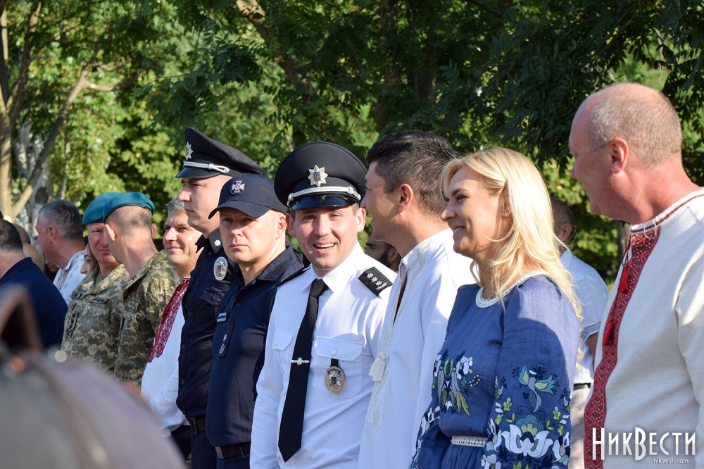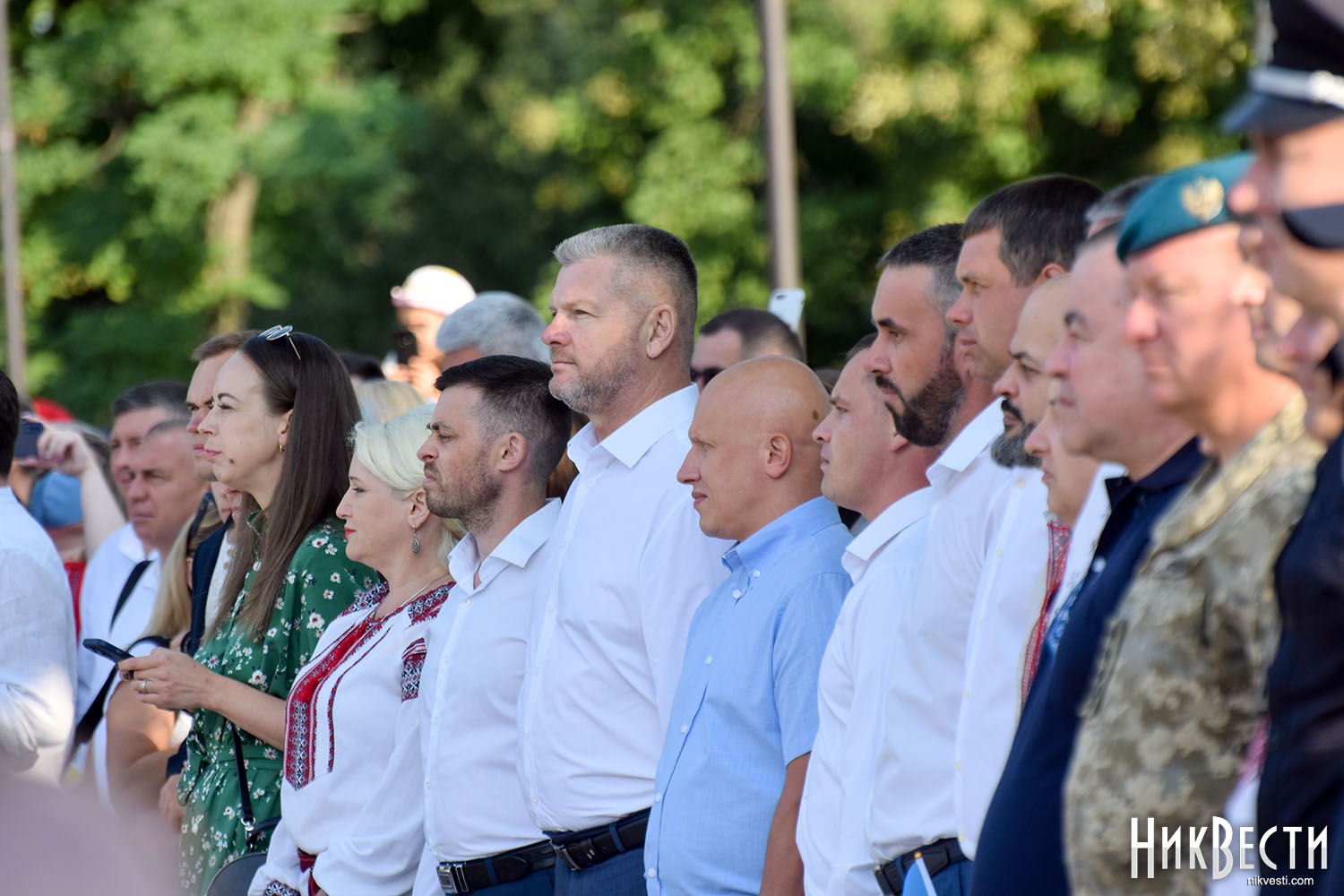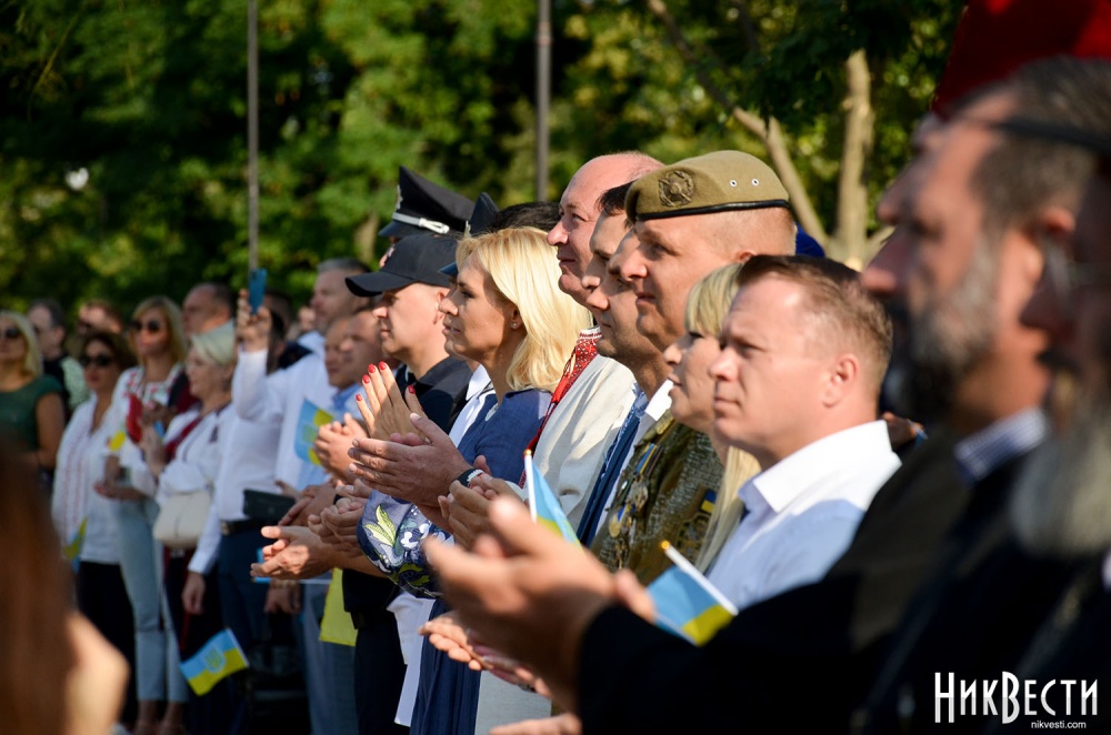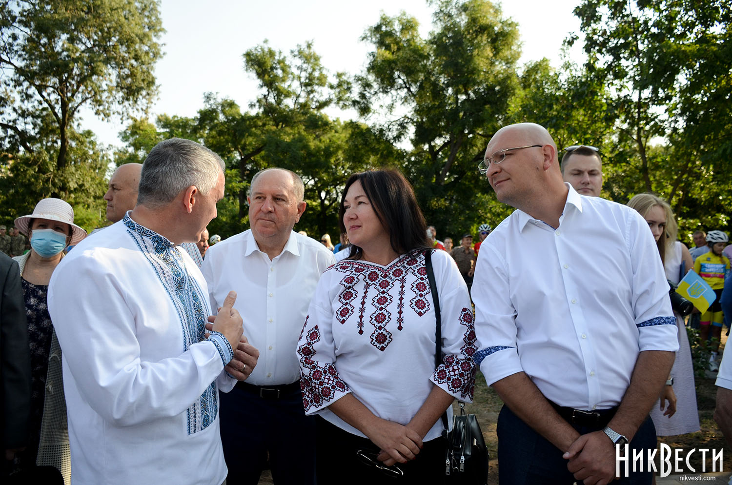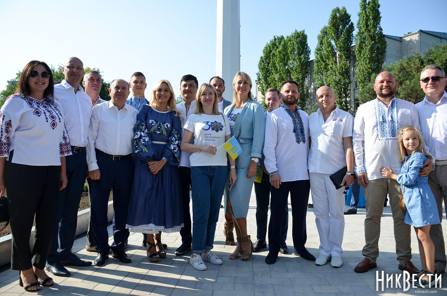 На мероприятии присутствовали руководство Николаевской области, представители городской власти, общественности, участники велопробега, посвященного Дню Флага и 30-летию Независимости Украины.