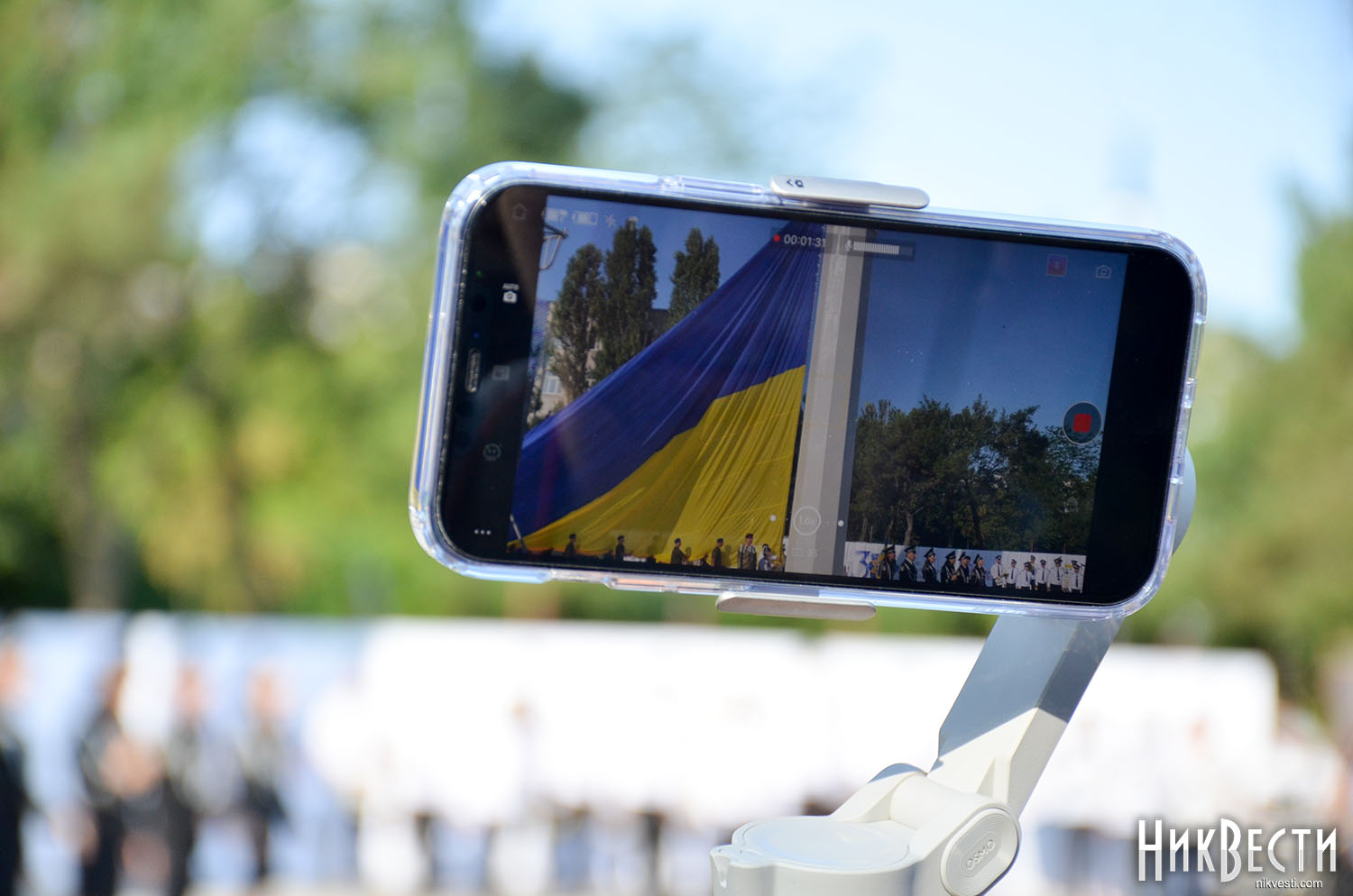 Размер полотна флага в Николаеве составляет — 12 на 18 метров, площадь — 216 м2. Вес — 30 кг.