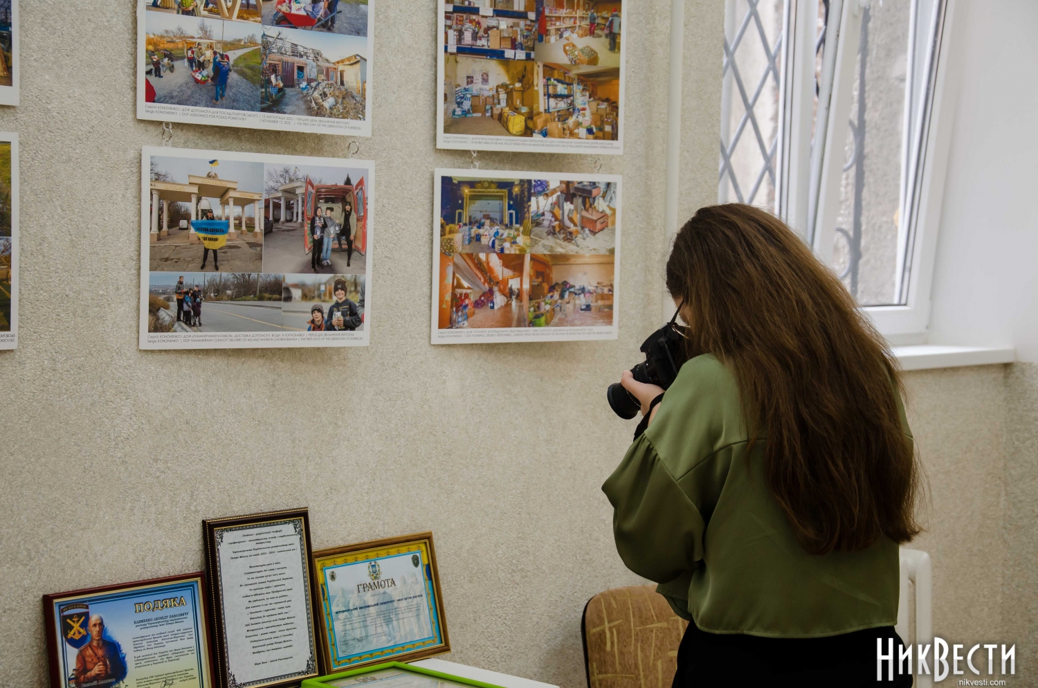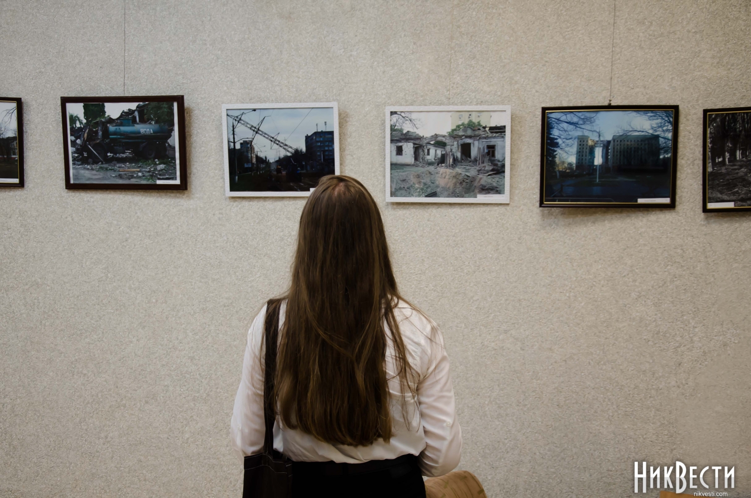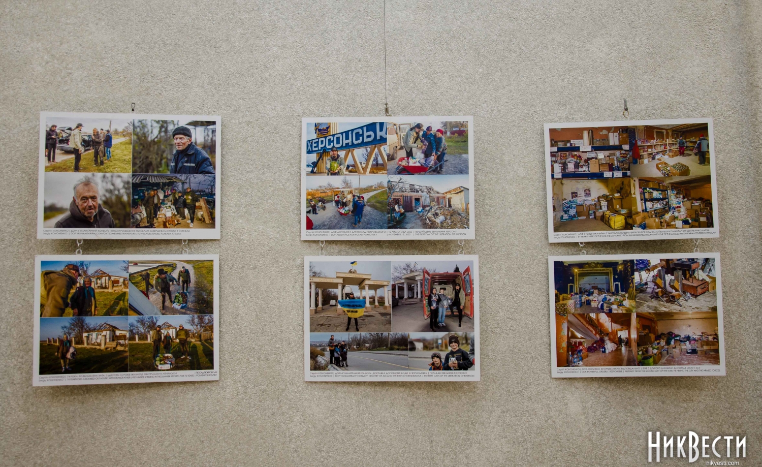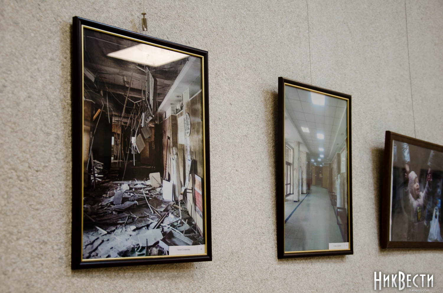 На виставці представлені фотографії присвячені незламним і нескореним миколаївцям, функціонуванню міста Миколаєва та області в період обстрілів та їхніх наслідків, передає кореспондент «НикВести».