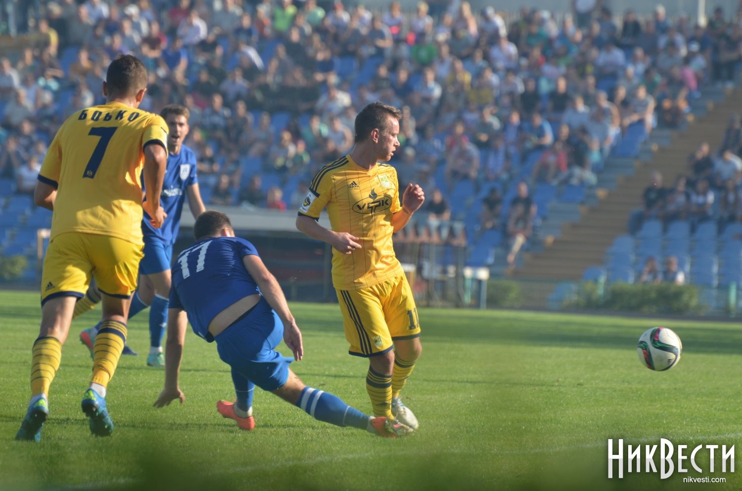 Первый тайм закончился со счетом 1:1, а победный мяч николаевцы забили после перерыва.