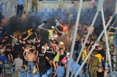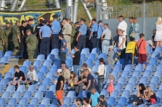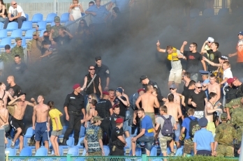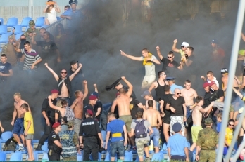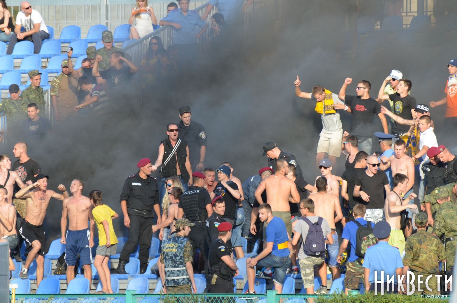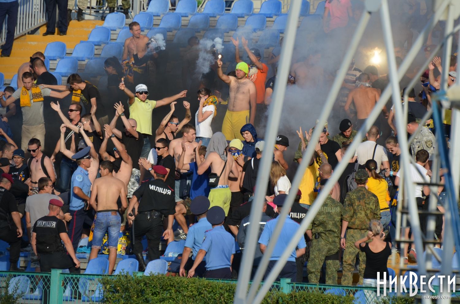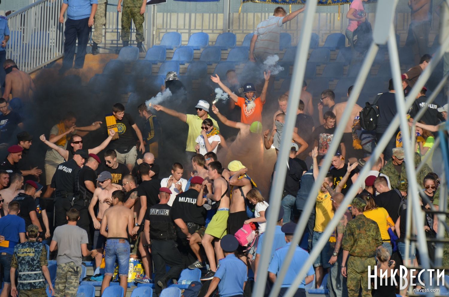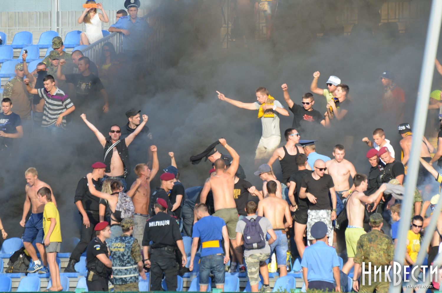 Под завязку матча на трибунах произошла потасовка между харьковскими «ультрас» и правоохранителями. Харьковчане зажгли на гостевом секторе несколько фаеров. Чтобы охладить пыл «ультрас», милиция пустила в ход дубинки.