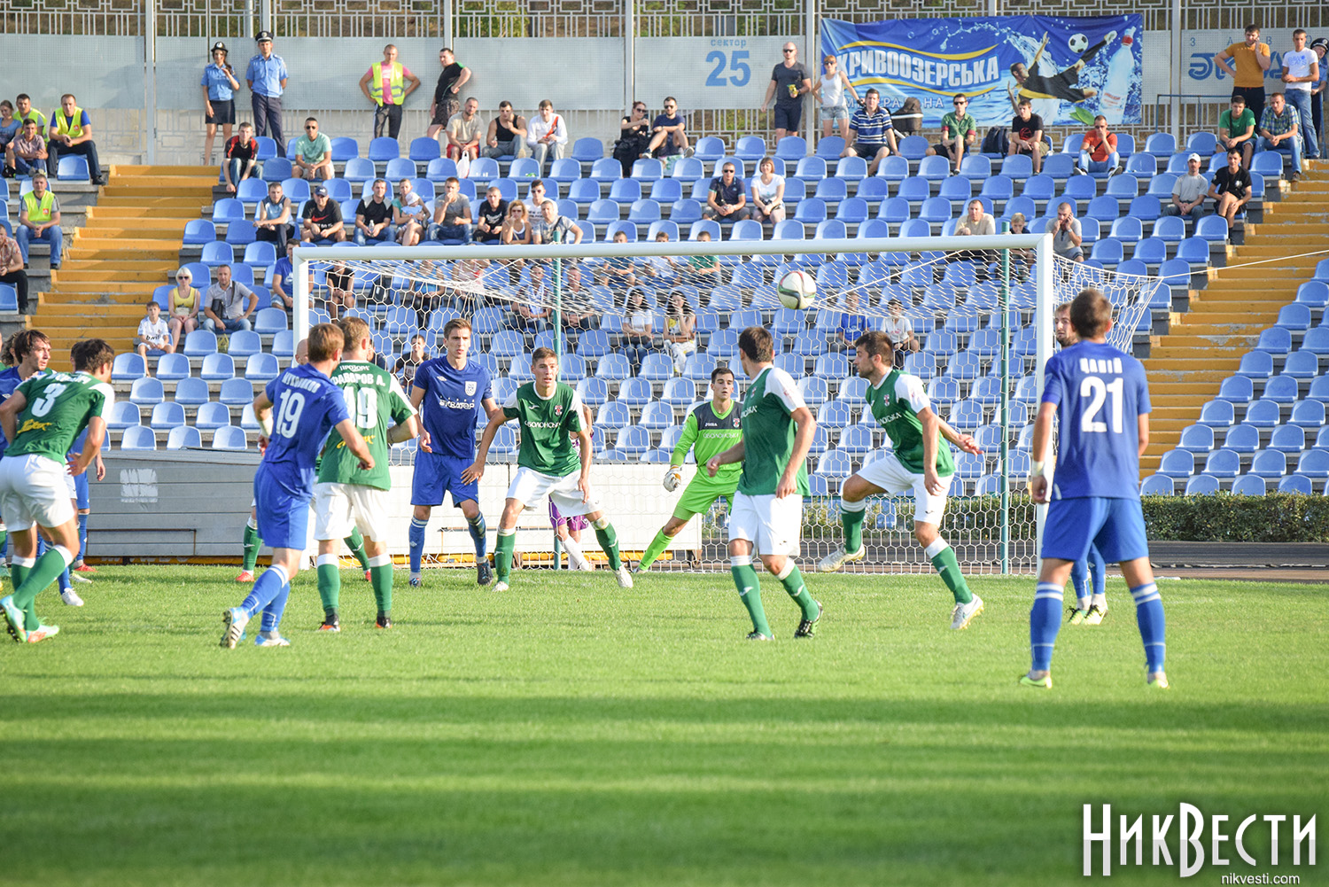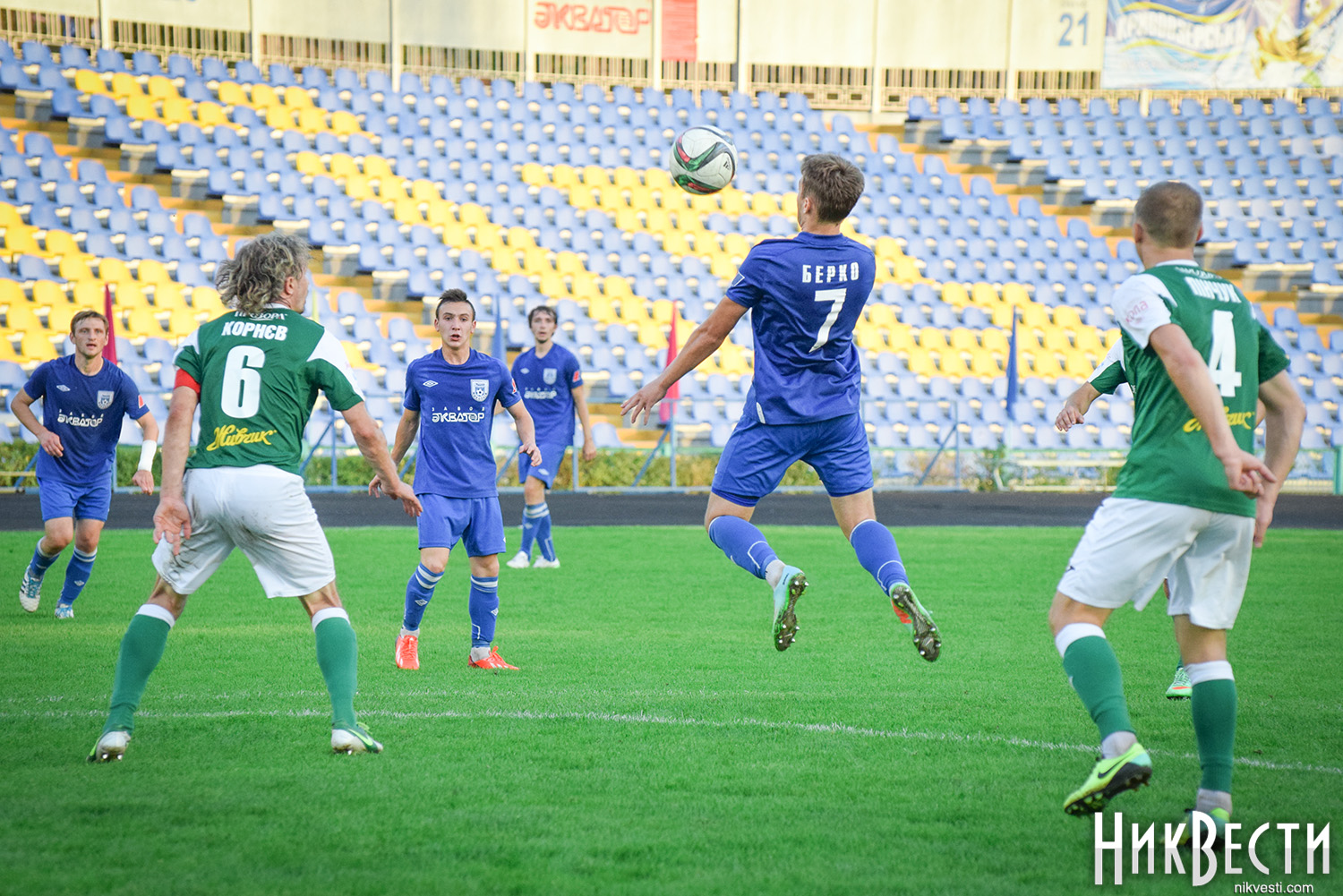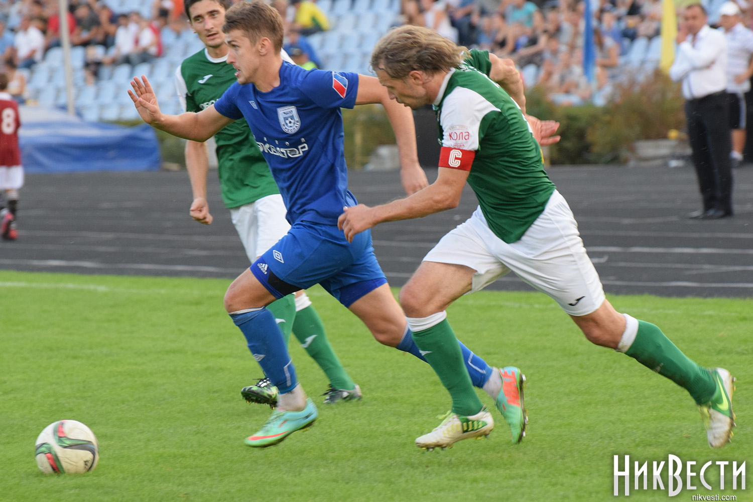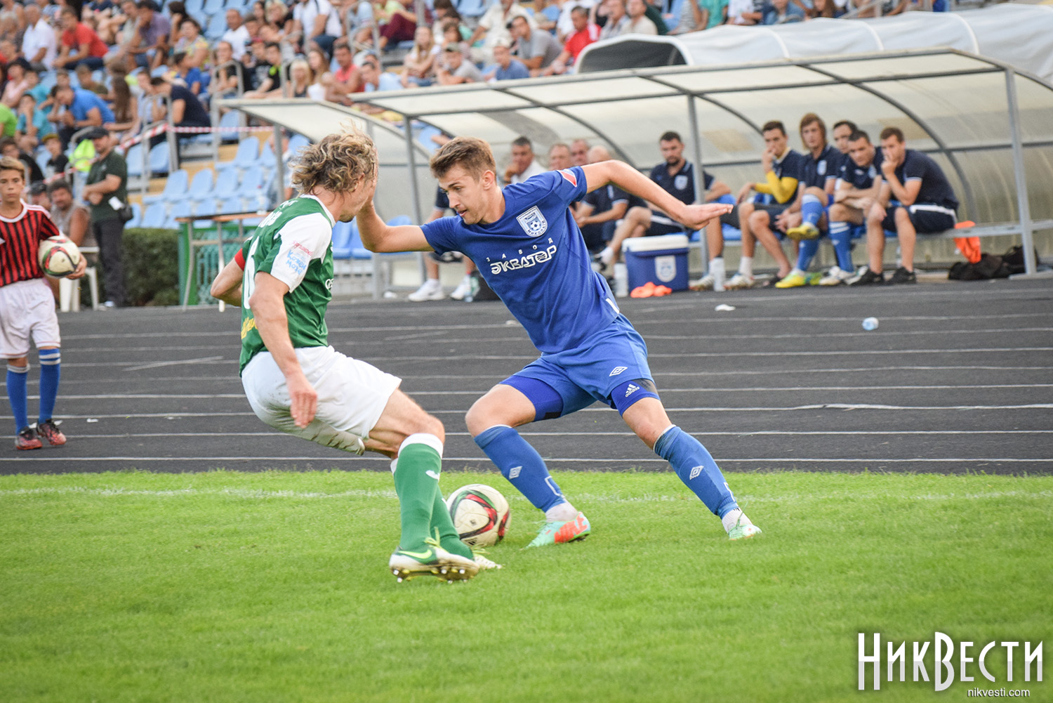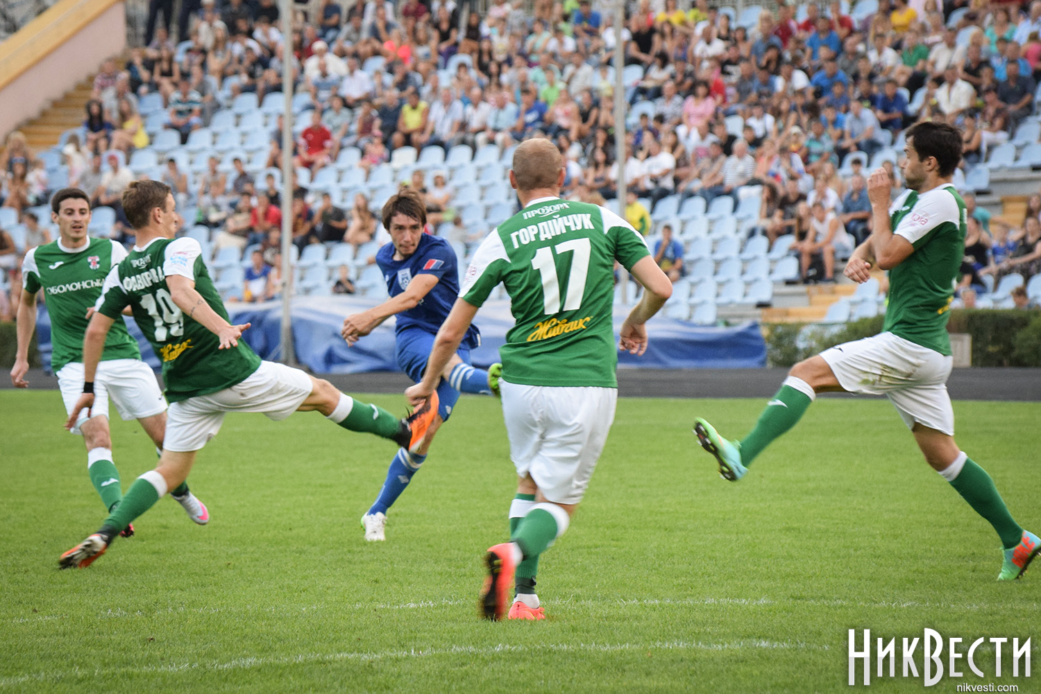 «В дебюте матча поуверенней выглядела «Оболонь», но извлечь дивиденды из ударов Бидловского и Сахнюка не смогла - в обоих случаях мяч пролетел мимо рамки. МФК «Николаев» впервые создал остроту у ворот Федоривского на 18-й минуте: Батюшин со штрафного пальнул в нижний угол, голкипер отразил мяч перед собой, но набежавший Сикорский пробил мимо цели. На 20-й минуте уже «Оболонь» была близка к успеху после хлесткого удара Фаворова метров с двадцати - Чумак в прыжке отвел угрозу. А на 24-й минуте голкипер МФК «Николаев» оказался бессилен, когда Сахнюк из пределов штрафной с разворота метко пробил под штангу. 0:1», - пишут «Николаевские новости».