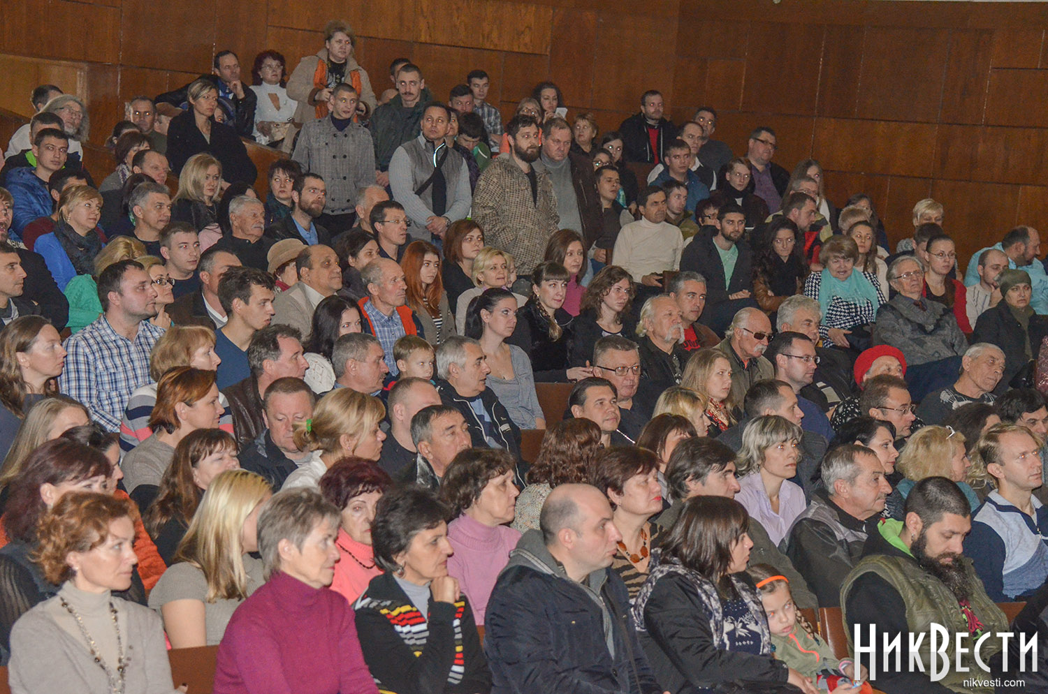Мероприятие проходило во Дворце творчества учащихся, зал которого рассчитан на 600 мест, в добавок к этому многие из пришедших стояли в проходах.