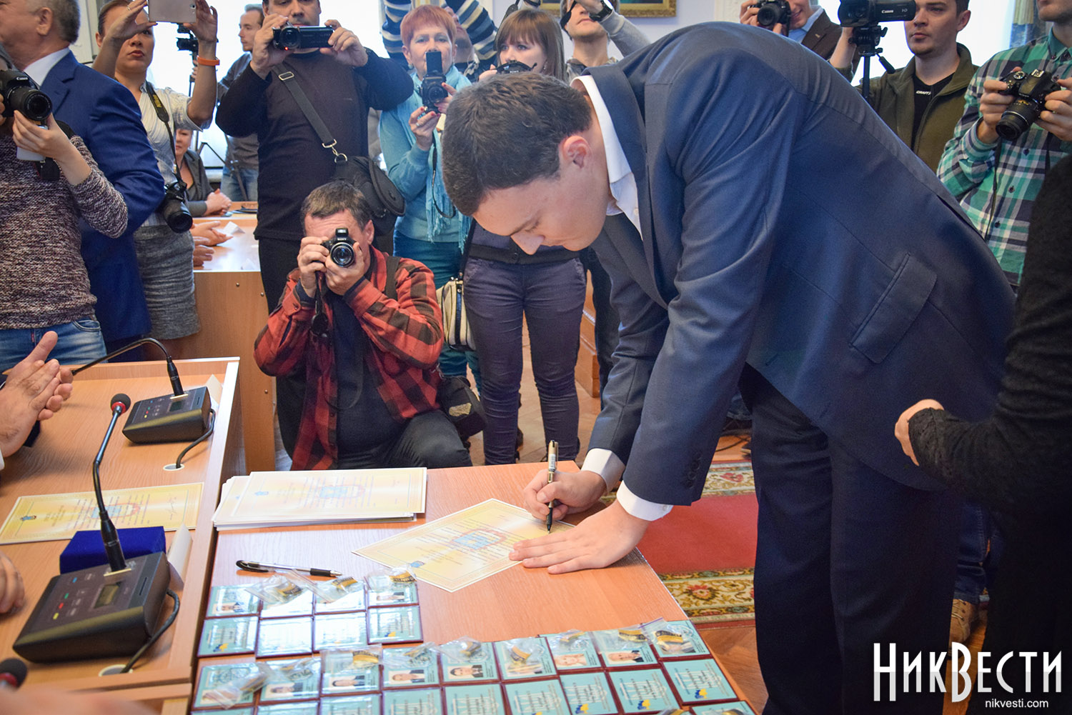 Во вторник, 24 ноября, состоялось первое пленарное заседание новоизбранного Николаевского городского совета VII созыва, в ходе которого депутаты и новый мэр Александр Сенкевич приняли присягу и пообещали отстаивать интересы николаевцев и соблюдать законы Украины.