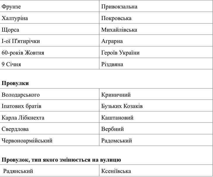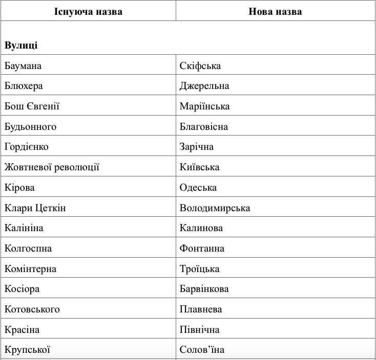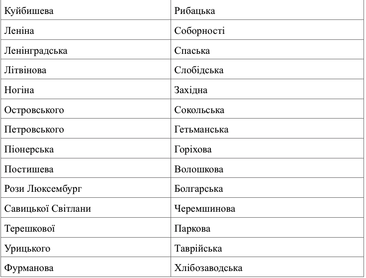 Об этом идет речь в распоряжении мэра города Виталия Лукова «О переименовании улиц, переулков на территории Вознесенска, названия которых содержат символику коммунистического тоталитарного режима», которое опубликовали на официальном сайте горсовета.