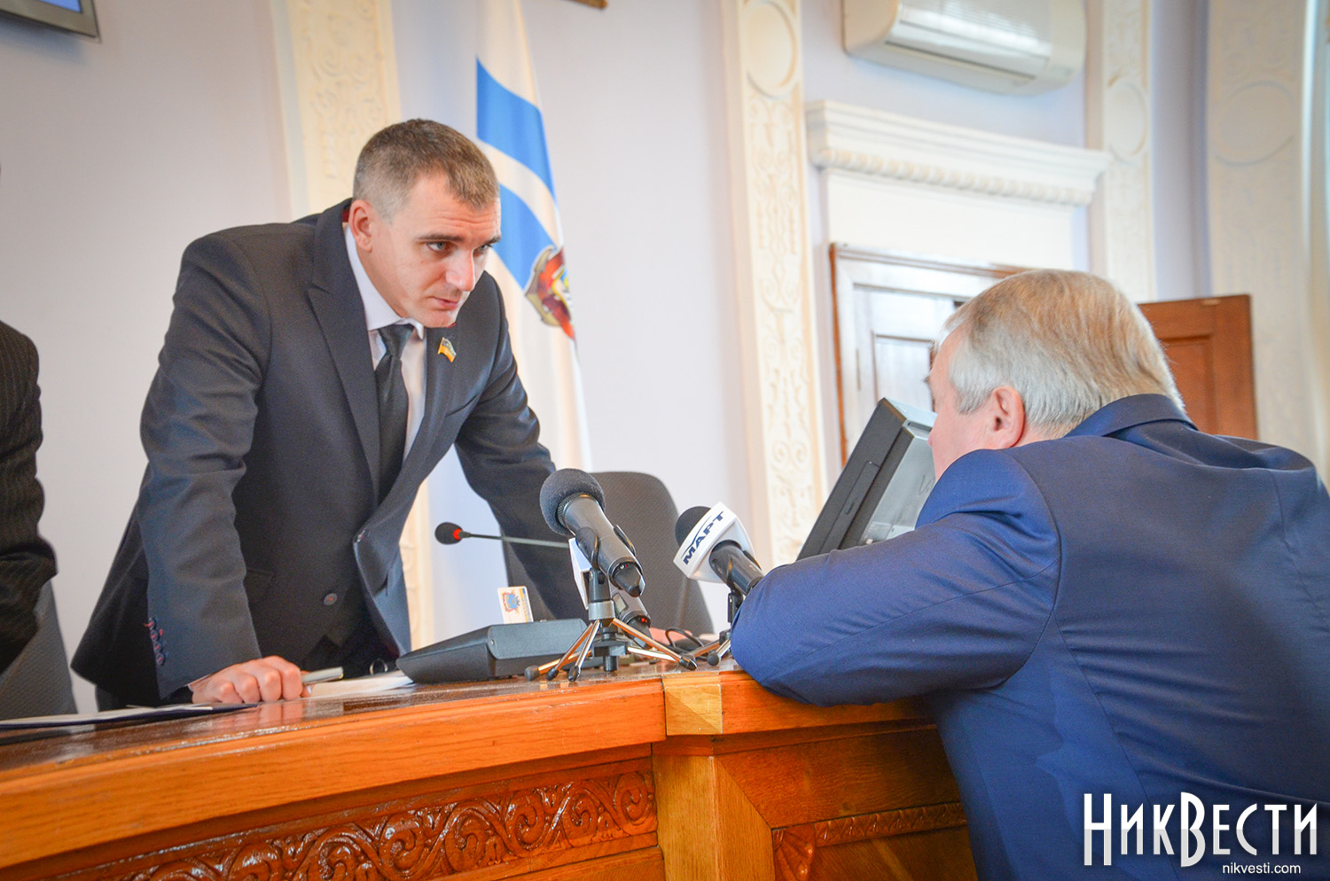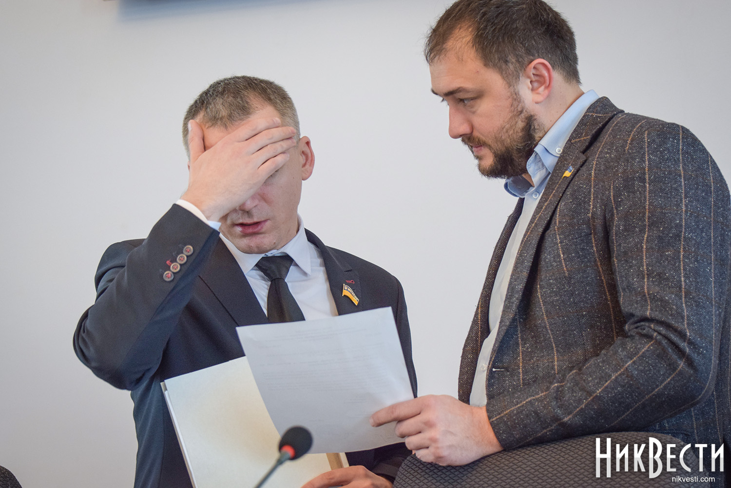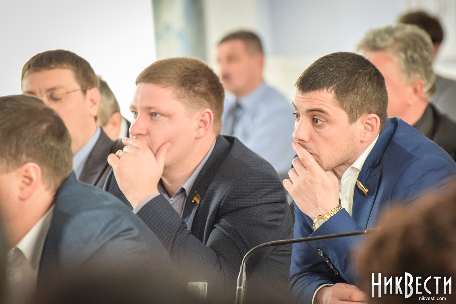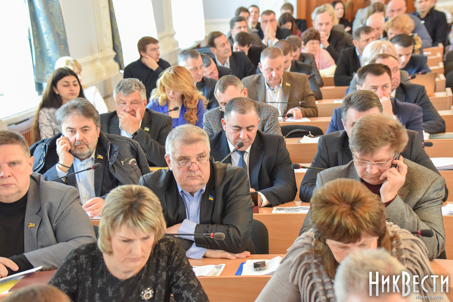На сегодняшнем заседании депутаты рассматривали вопросы земельного характера, касающиеся непосредственно горожан, в частности, участников антитеррористической операции. Также депутаты рассмотрели вопросы коммунальной собственности, дали согласие коммунальному предприятию «Николаевводоканал» взять кредит на сумму в 3 миллиона гривен, ликвидировали городскую пищевую технологическую лабораторию, обсудили проблему «накрутки» тепловых счетчиков на домах горожан и даже изобрели новую неформальную классификацию фракций в горсовете.